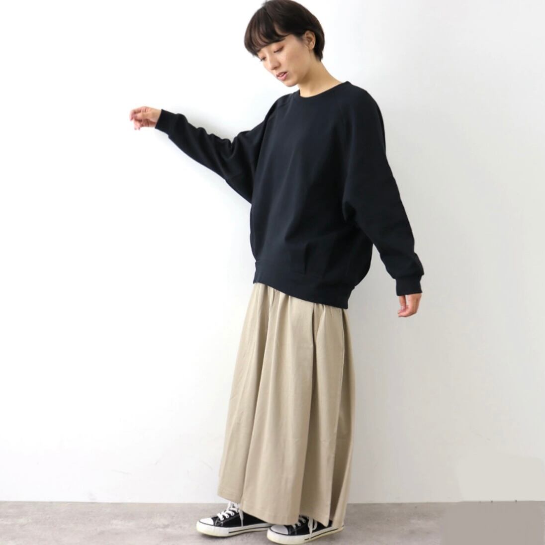 セーター ジャージ 裾Wタック ドルマン プルオーバー