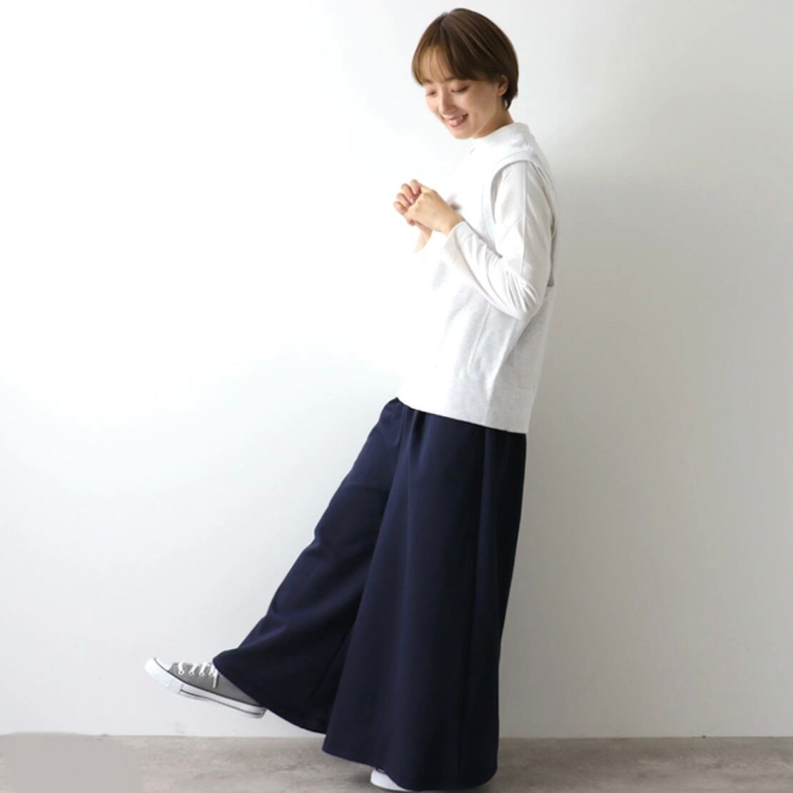 上品な印象のパンツです。かなりワイドなシルエットも印象的で可愛いです。