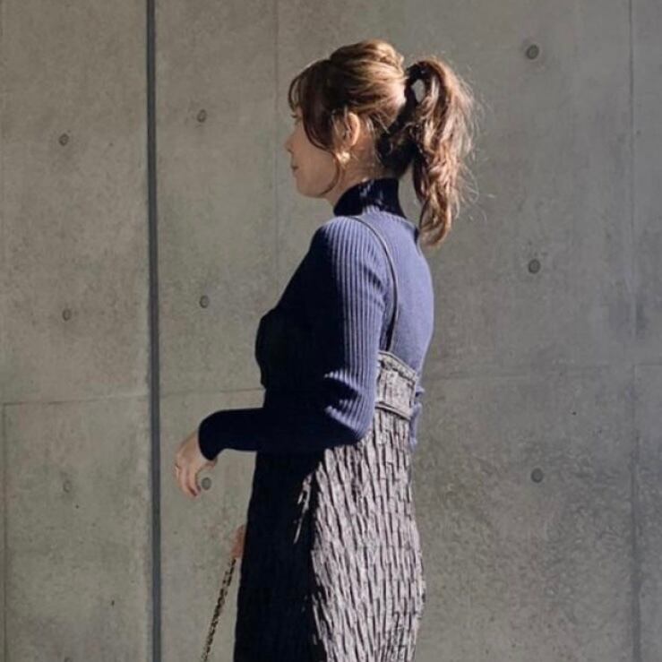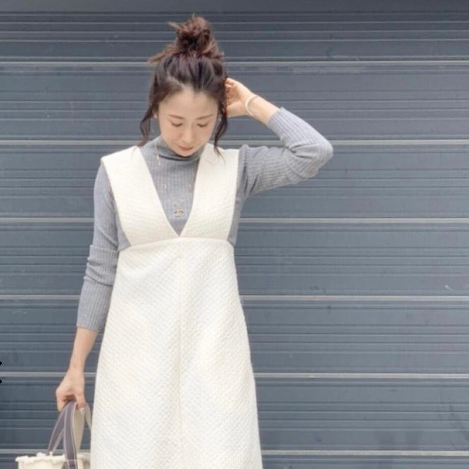 程よく身体にフィットするサイズ感なのでピタピタしすぎずインナー使いはもちろん、1枚で着ても身体をスッキリと見せてくれます。
