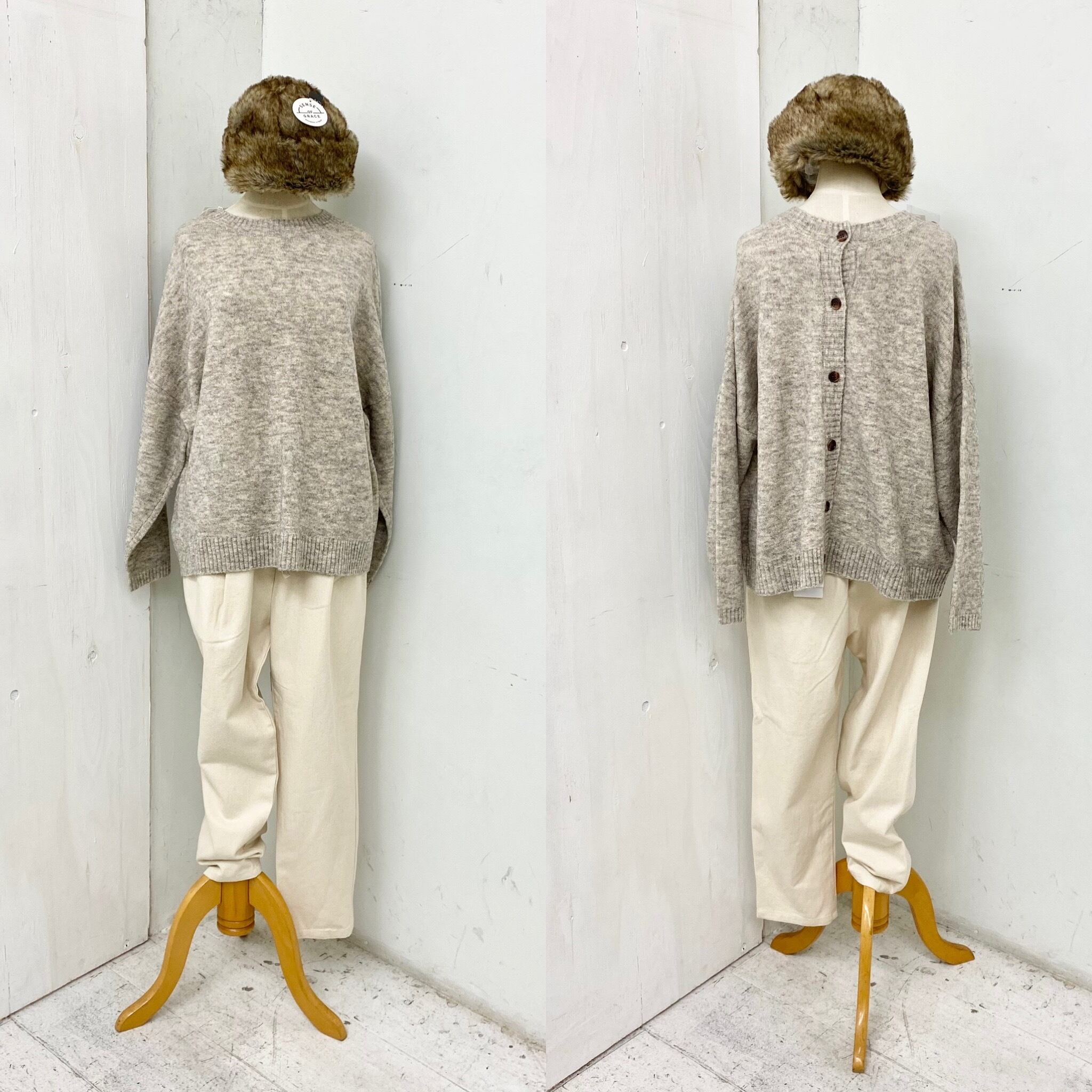 アルパカ混の前後 2WAY仕様のカーディガン&プルオーバー