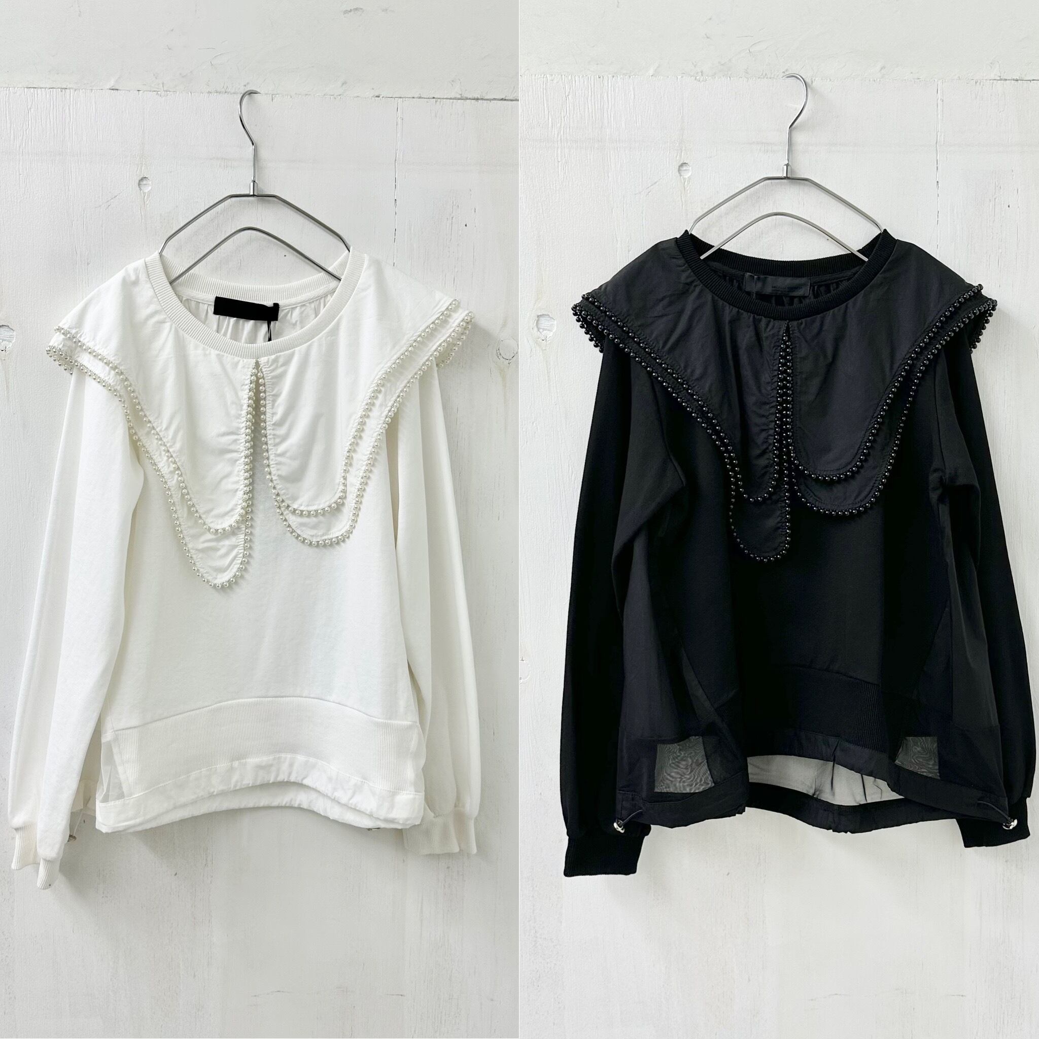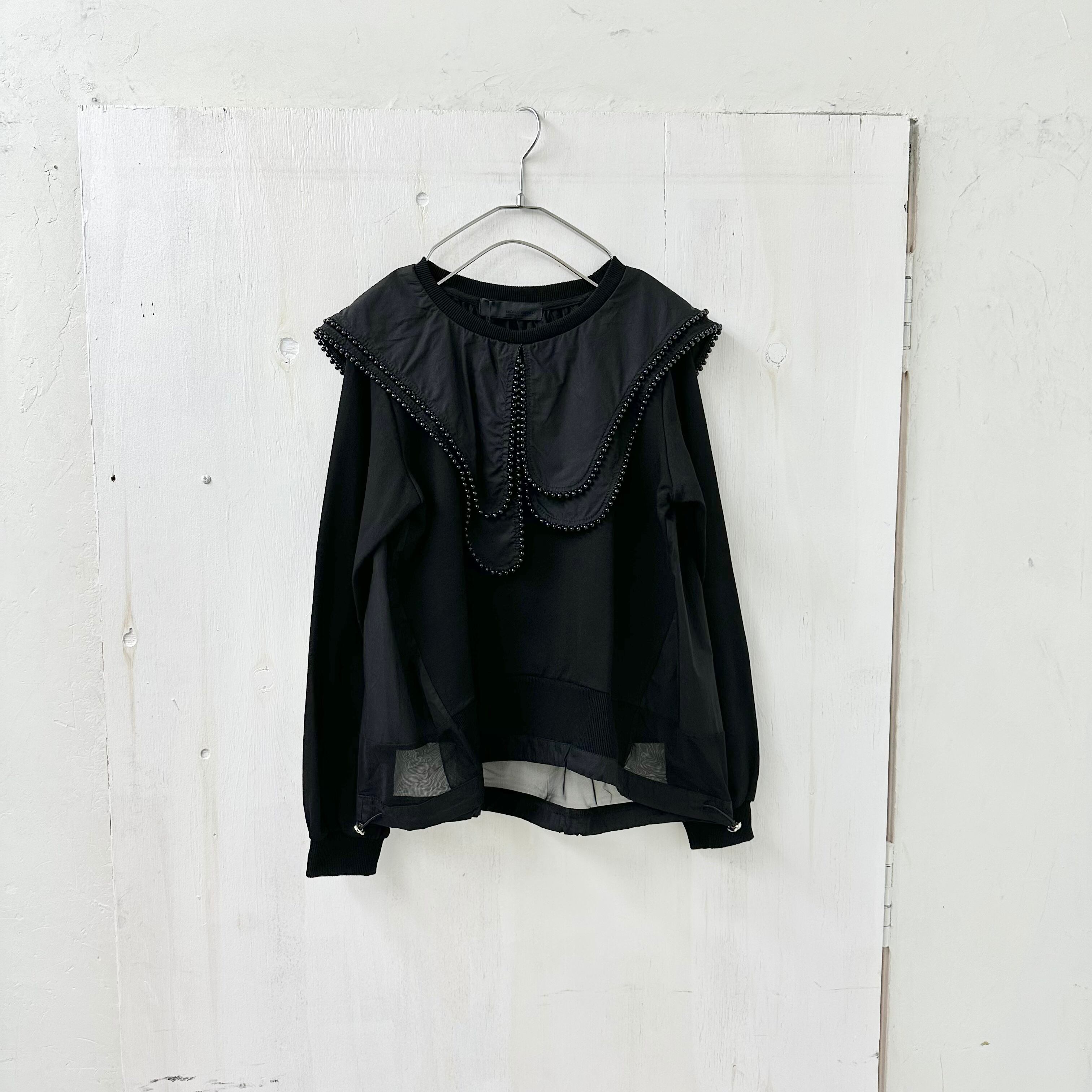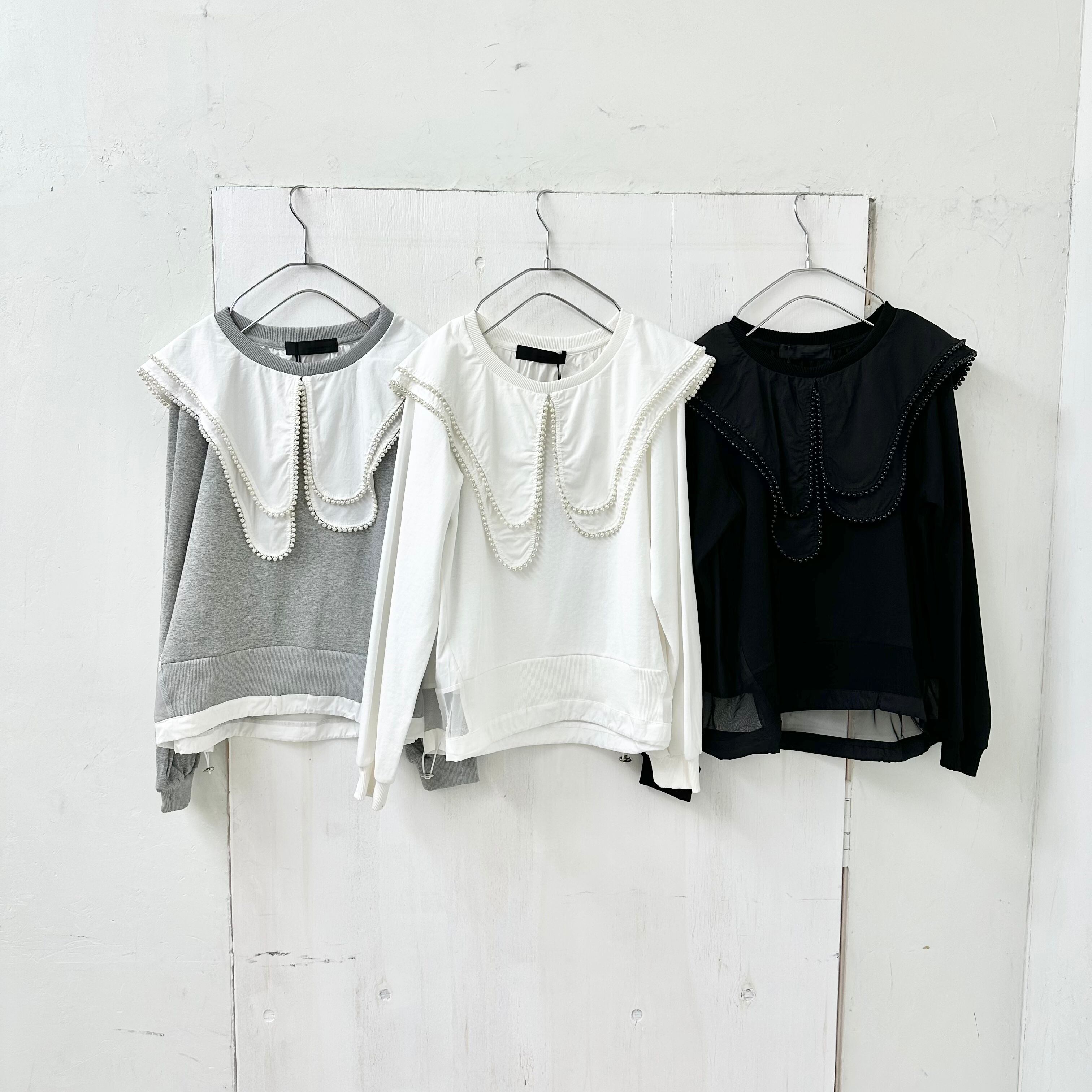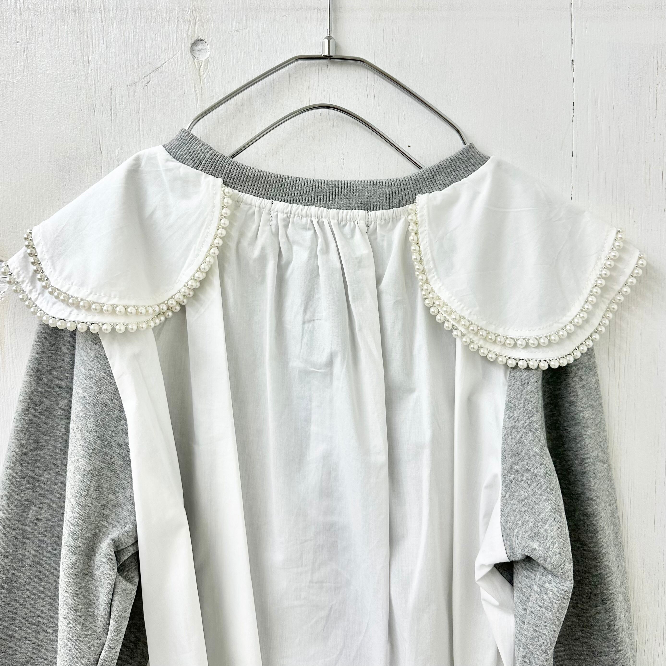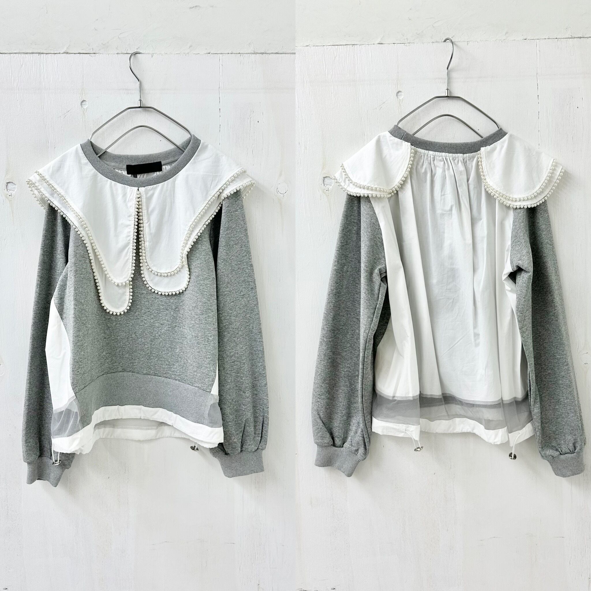 【micalle micalle】パール BIG カラー スウェットX布帛切替 プルオーバー