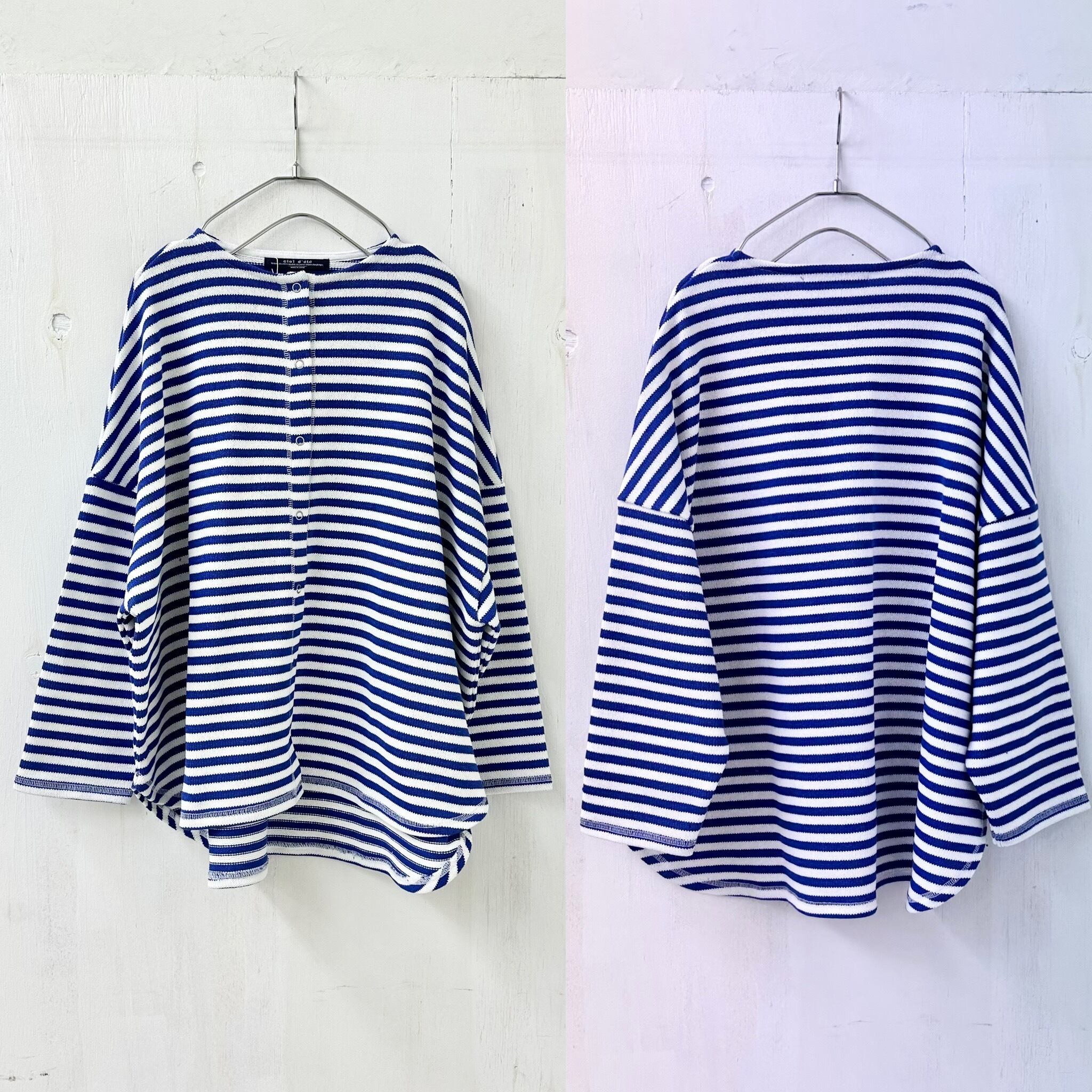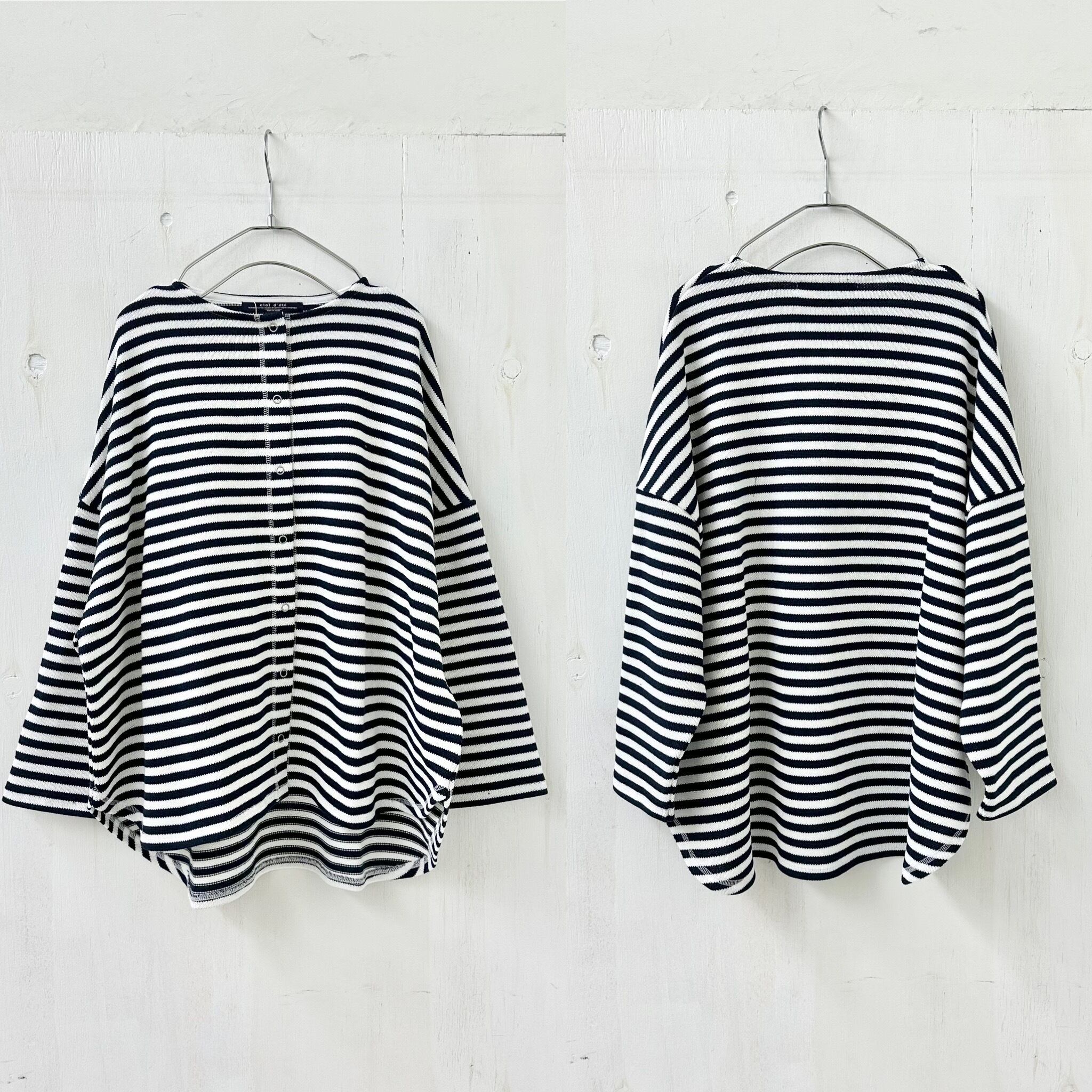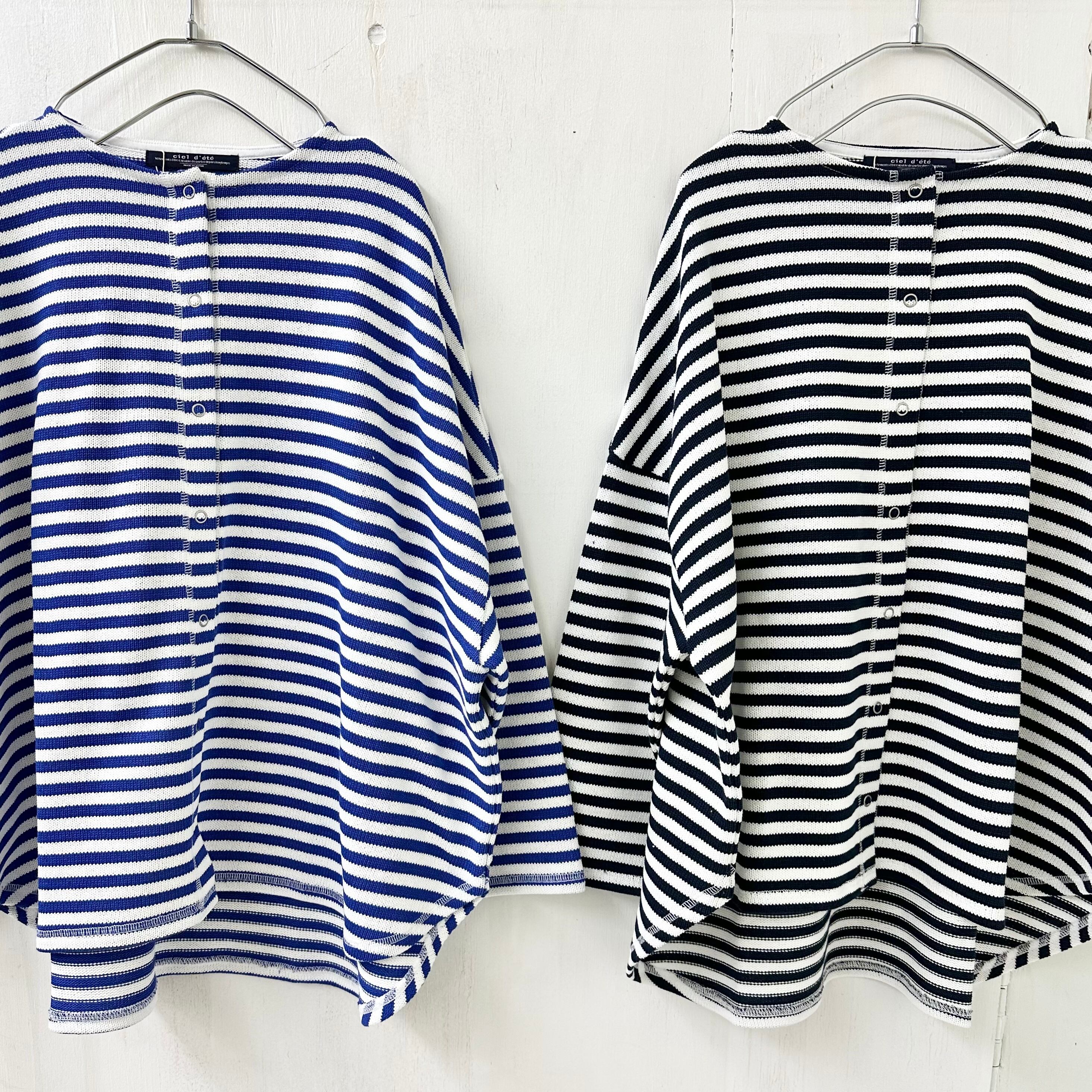 【ciel d’ete / シャルデテ】16/2 引き揃え天竺ボーダー 3本針 リング ドット カーディガン