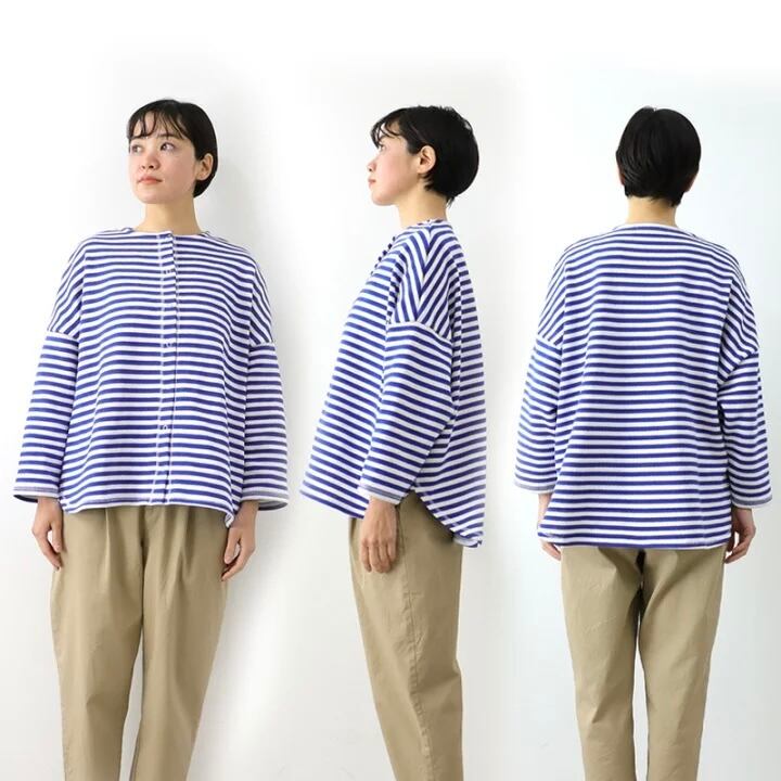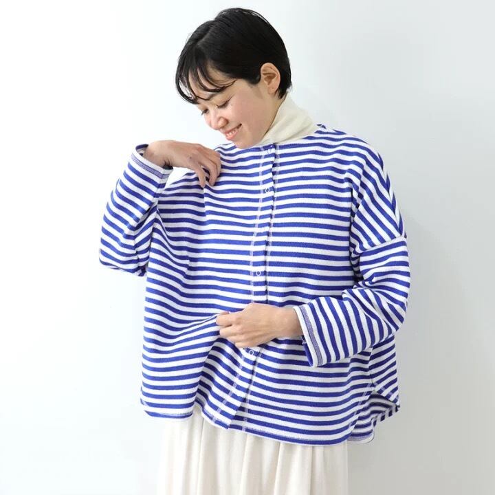 【ciel d ete / シャルデテ】16/2 引き揃え天竺ボーダー 3本針 リング ドット カーディガン