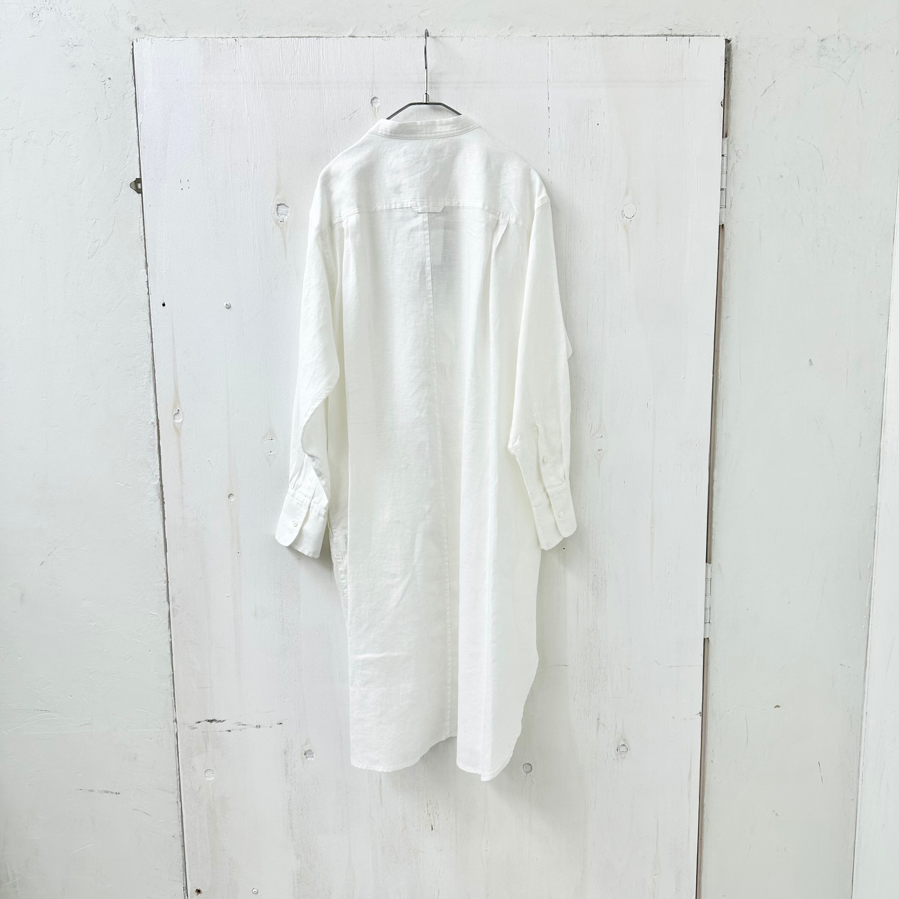 ライト リネン キャンバス バンドカラー シャツ ワンピース