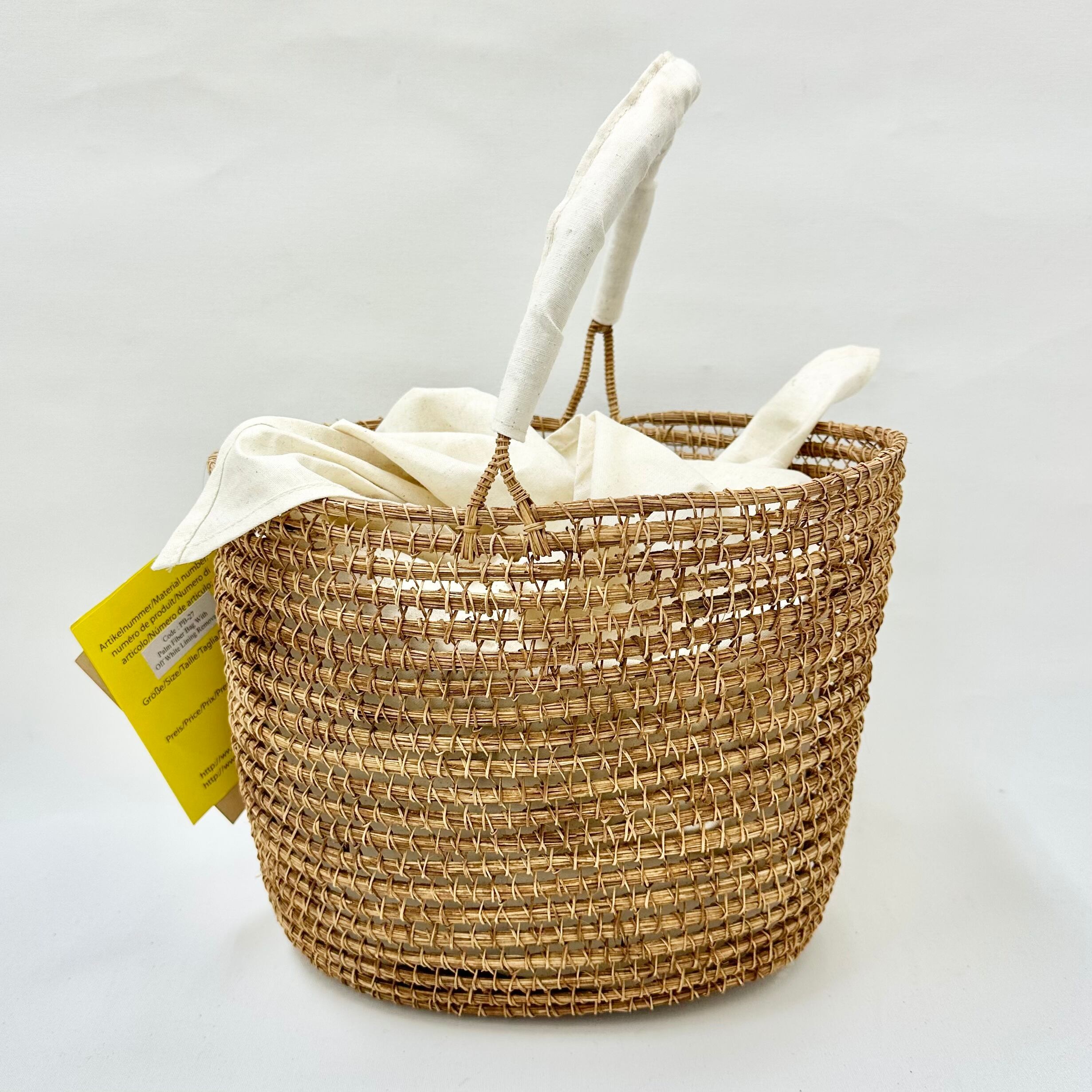 【TARANGO PALM】パームファイバー カゴ BAG S「インナー付き」オフホワイト made in BANGLADESH