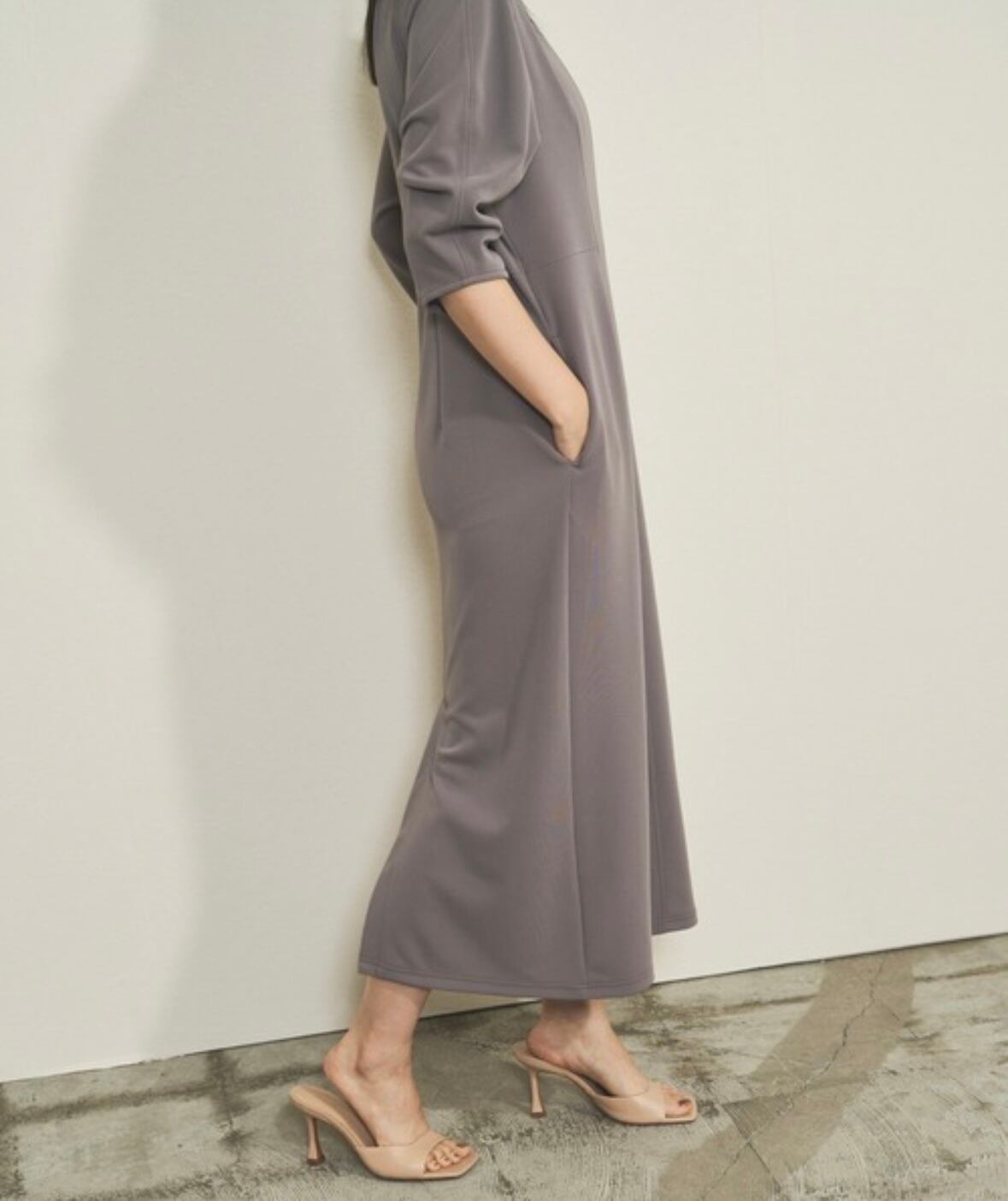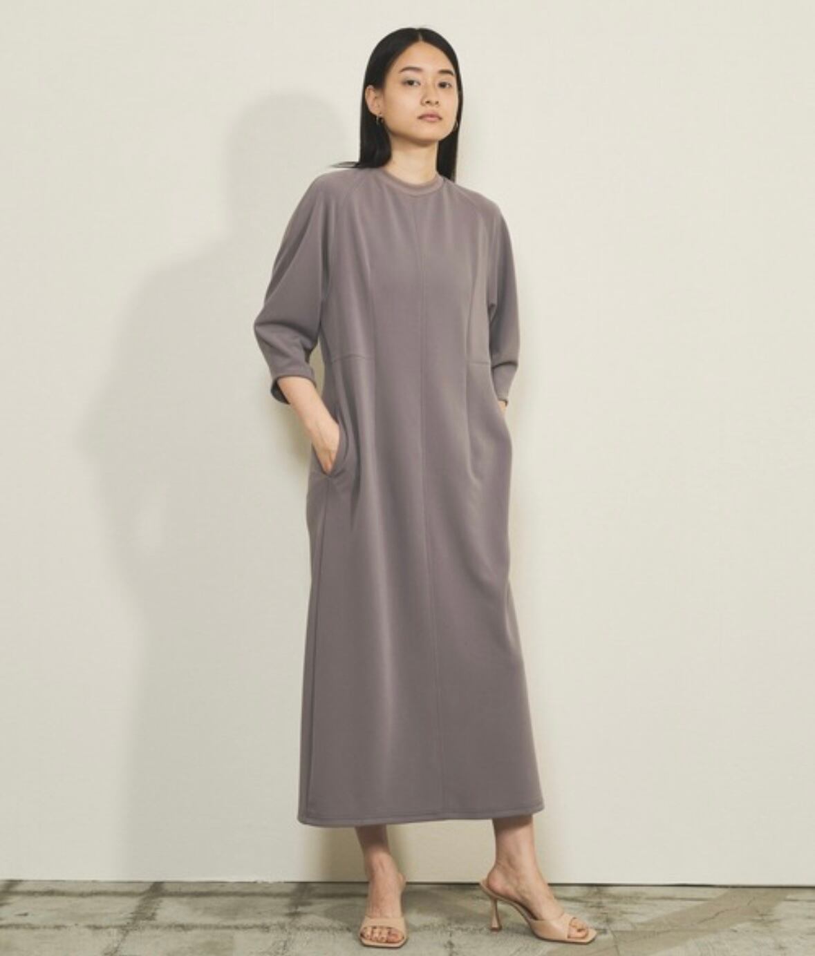 【Audrey and John Wad】ドライ タッチ カーブ スリーブ ロング ワンピース made in JAPAN