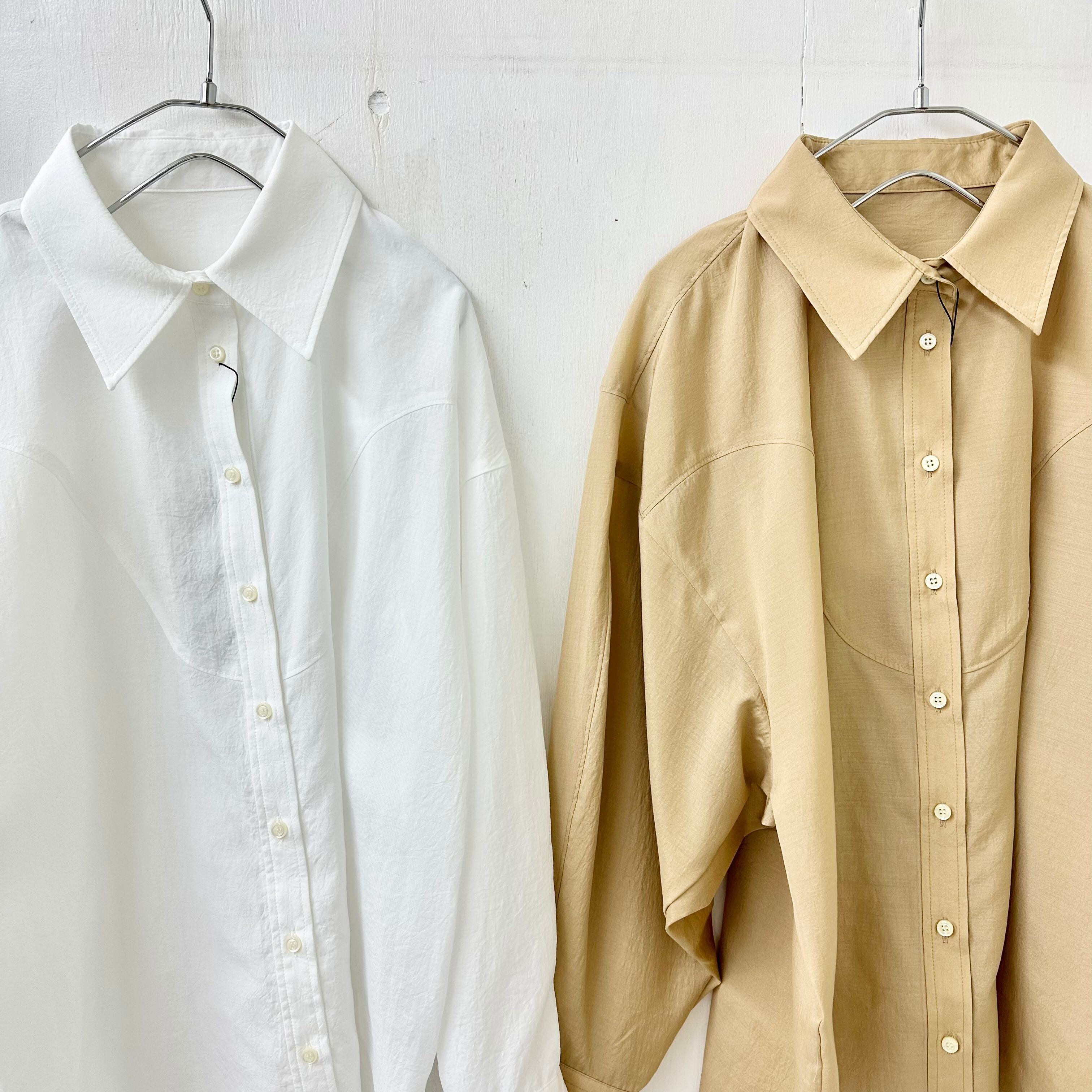 【Audrey and John Wad】リサイクル ポリエステル タフタ 変形ラグラン タック ボリューム袖 ブラウス made in JAPAN