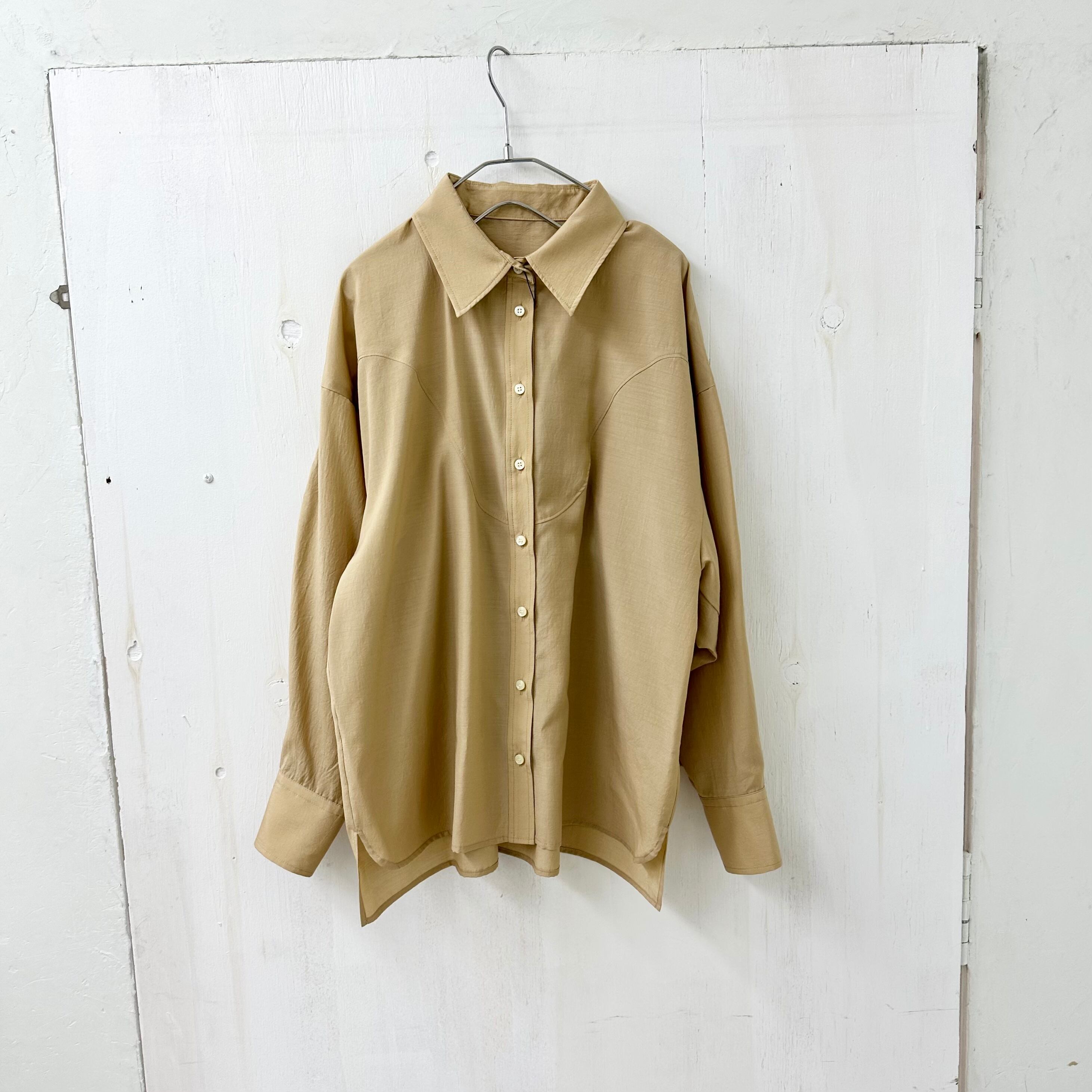 リサイクル ポリエステル タフタ 変形ラグラン タック ボリューム袖 ブラウス made in JAPAN