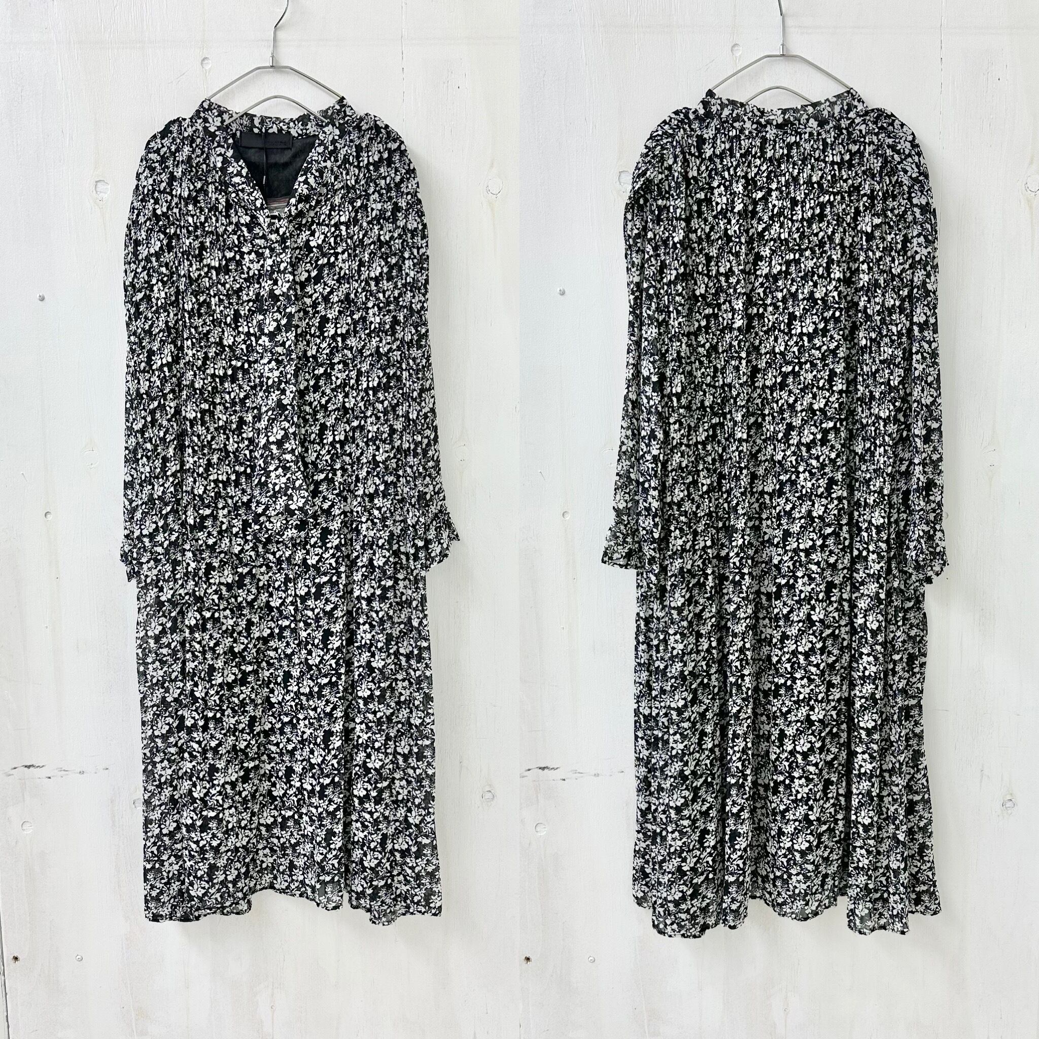 【micalle micalle】フラワー柄 ロング プリーツ ワンピース