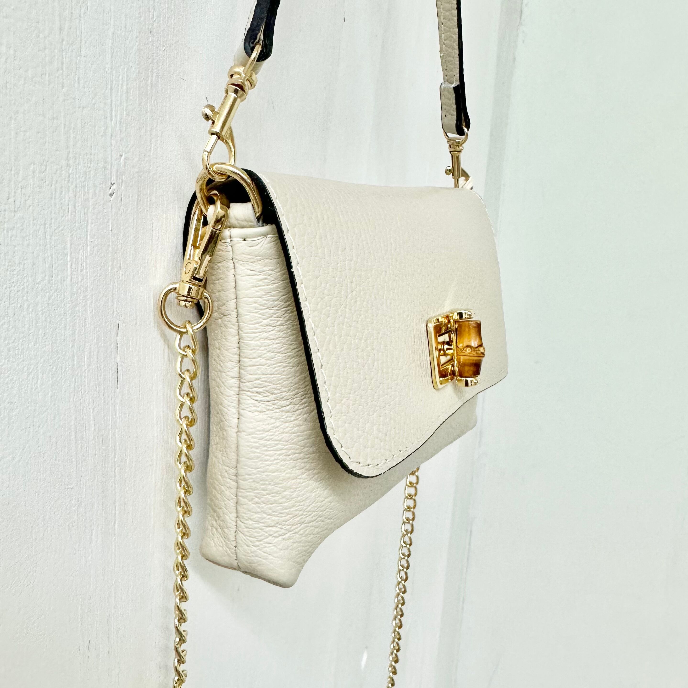 【eterno】シボ革 3WAY ショルダー ミニ バッグ「バンブー」/ BEIGE(ベージュ) made in ITALY