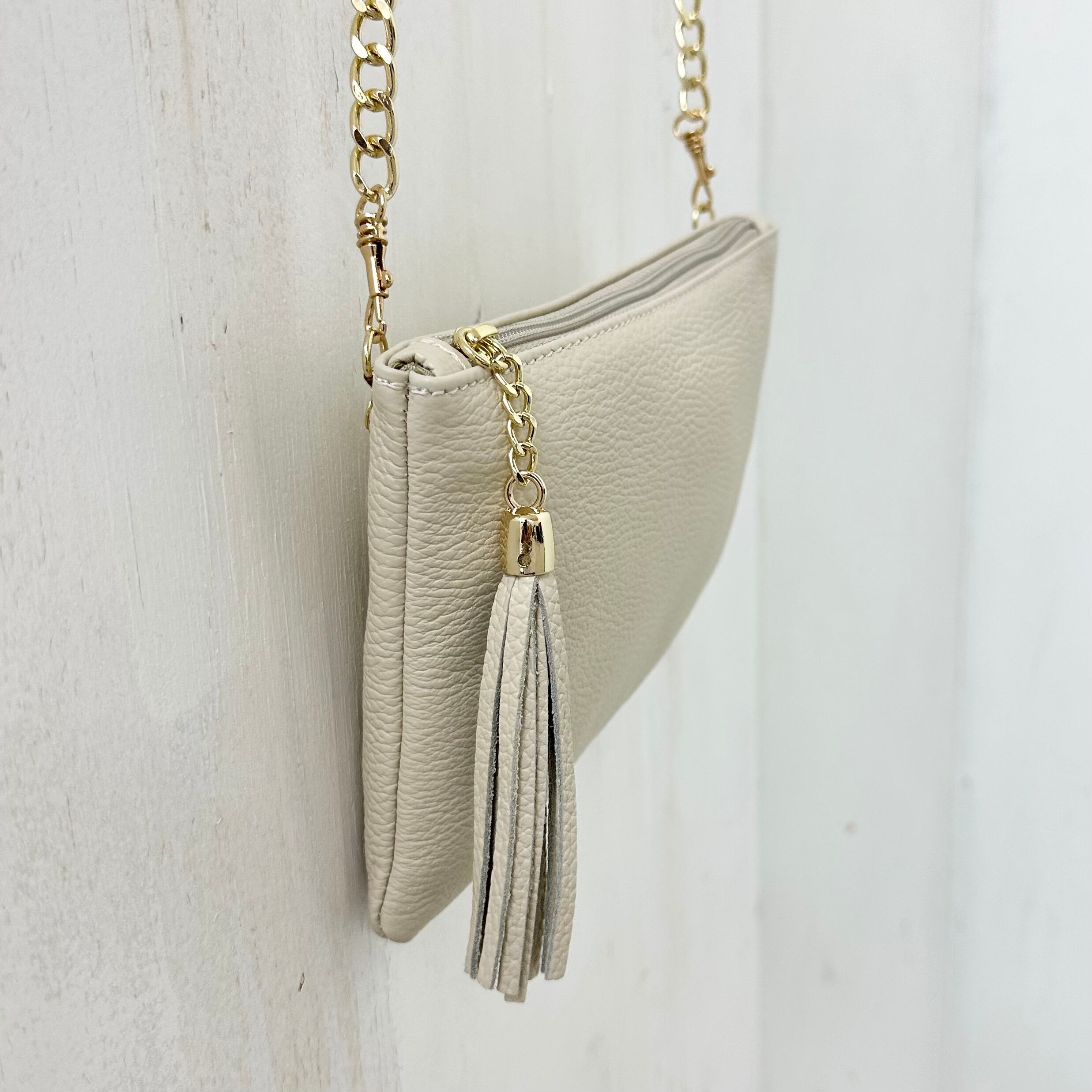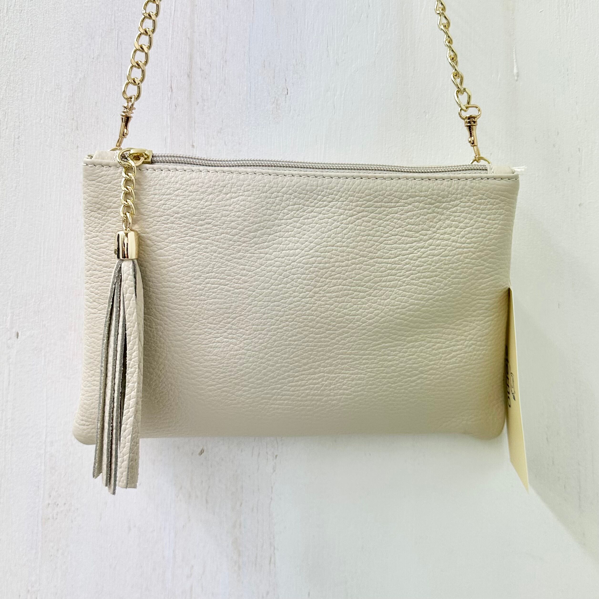 【eterno】シボ革 2WAY チェーン ショルダー バッグ「タッセル」/ BEIGE(ベージュ) made in ITALY