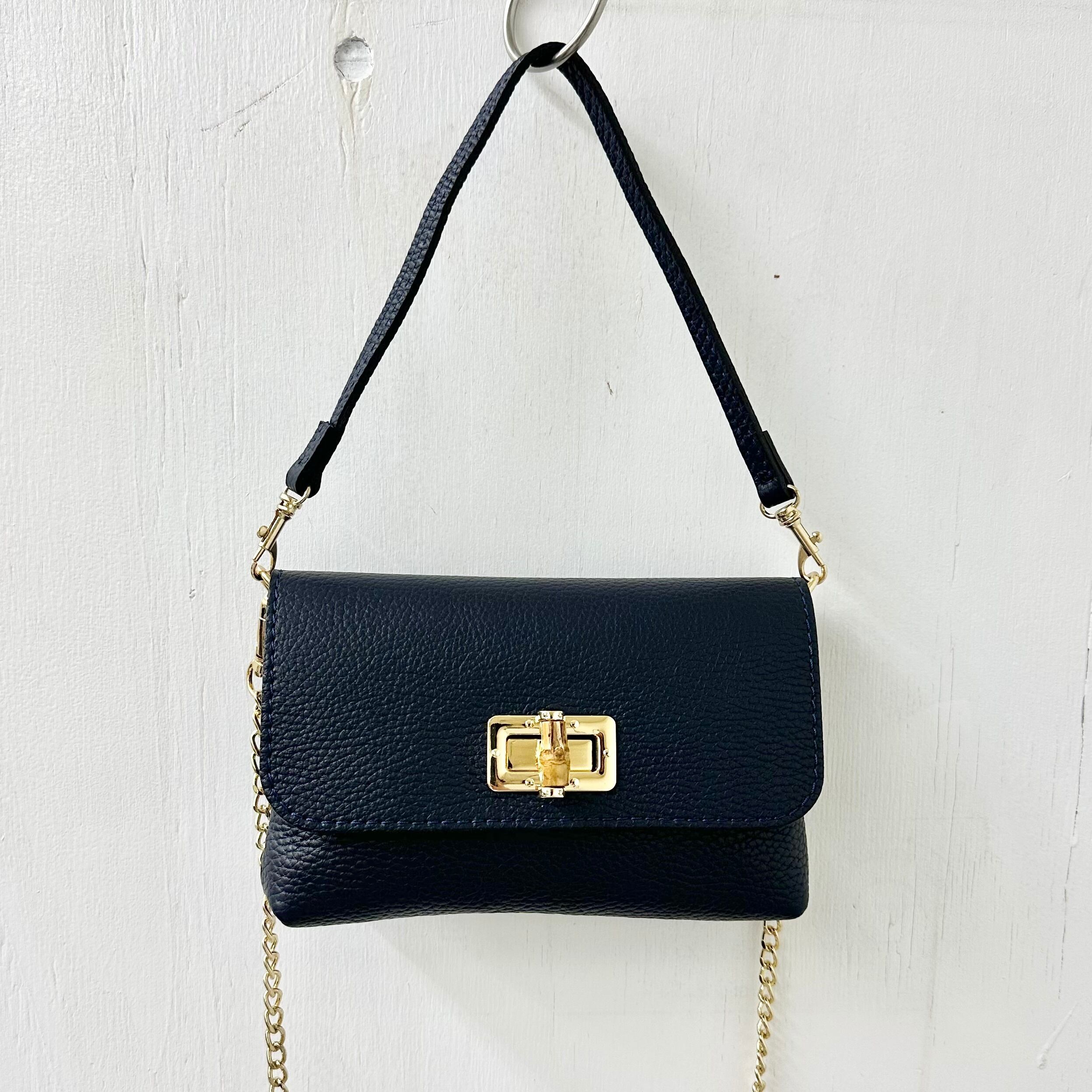 【eterno】シボ革 3WAY ショルダー ミニ バッグ「バンブー」/ BLU(ネイビー) made in ITALY