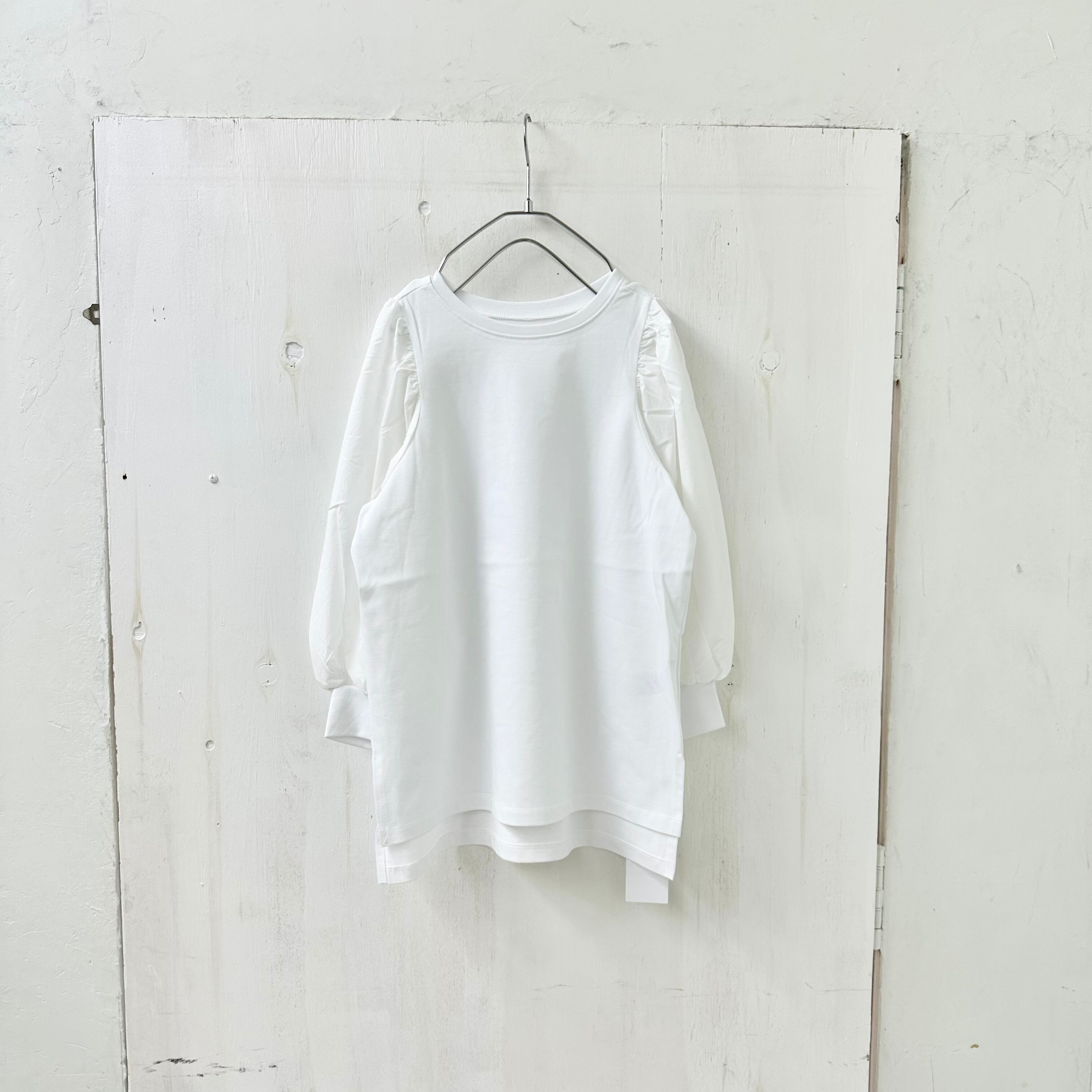 カットソーx布帛セットインボリューム袖TOPSが