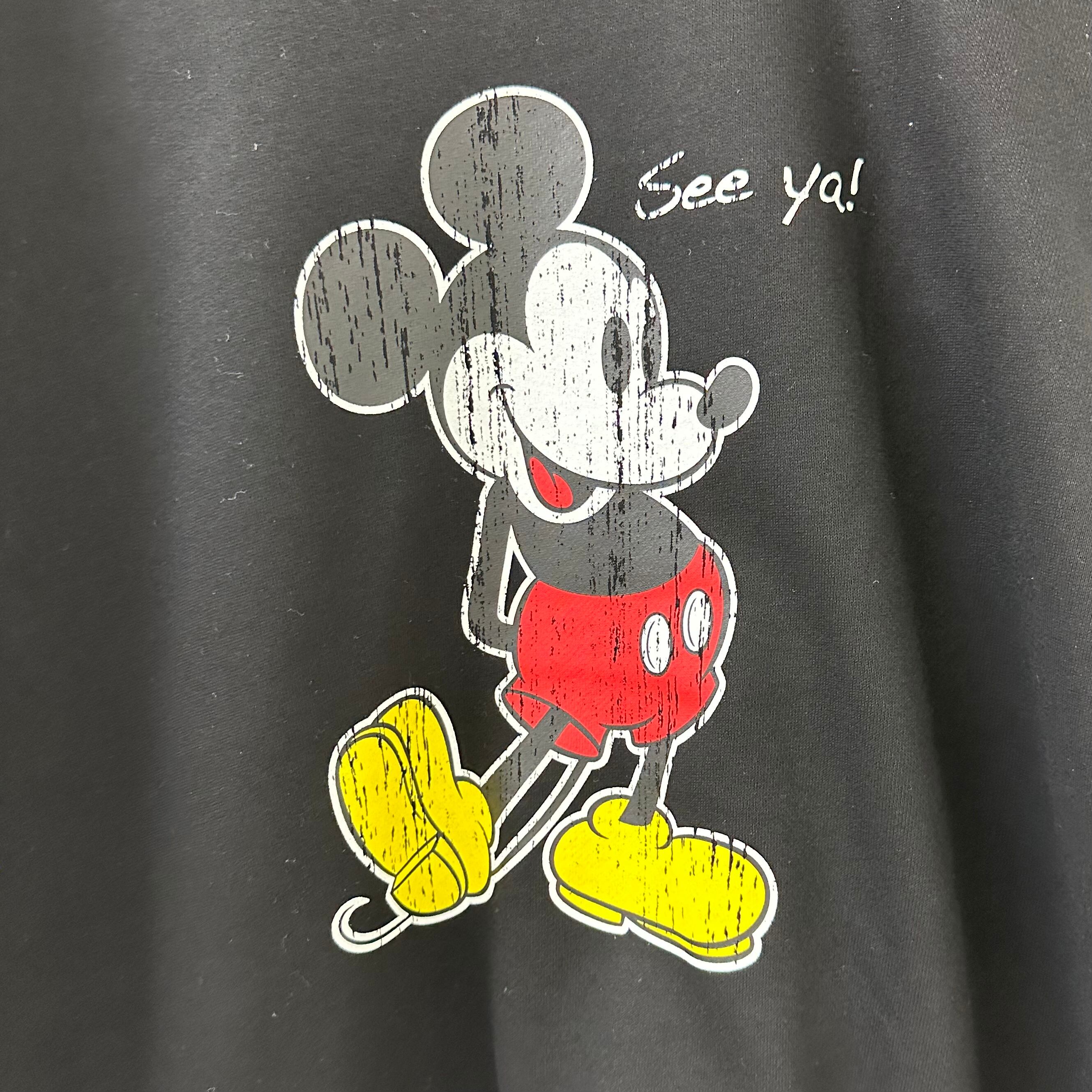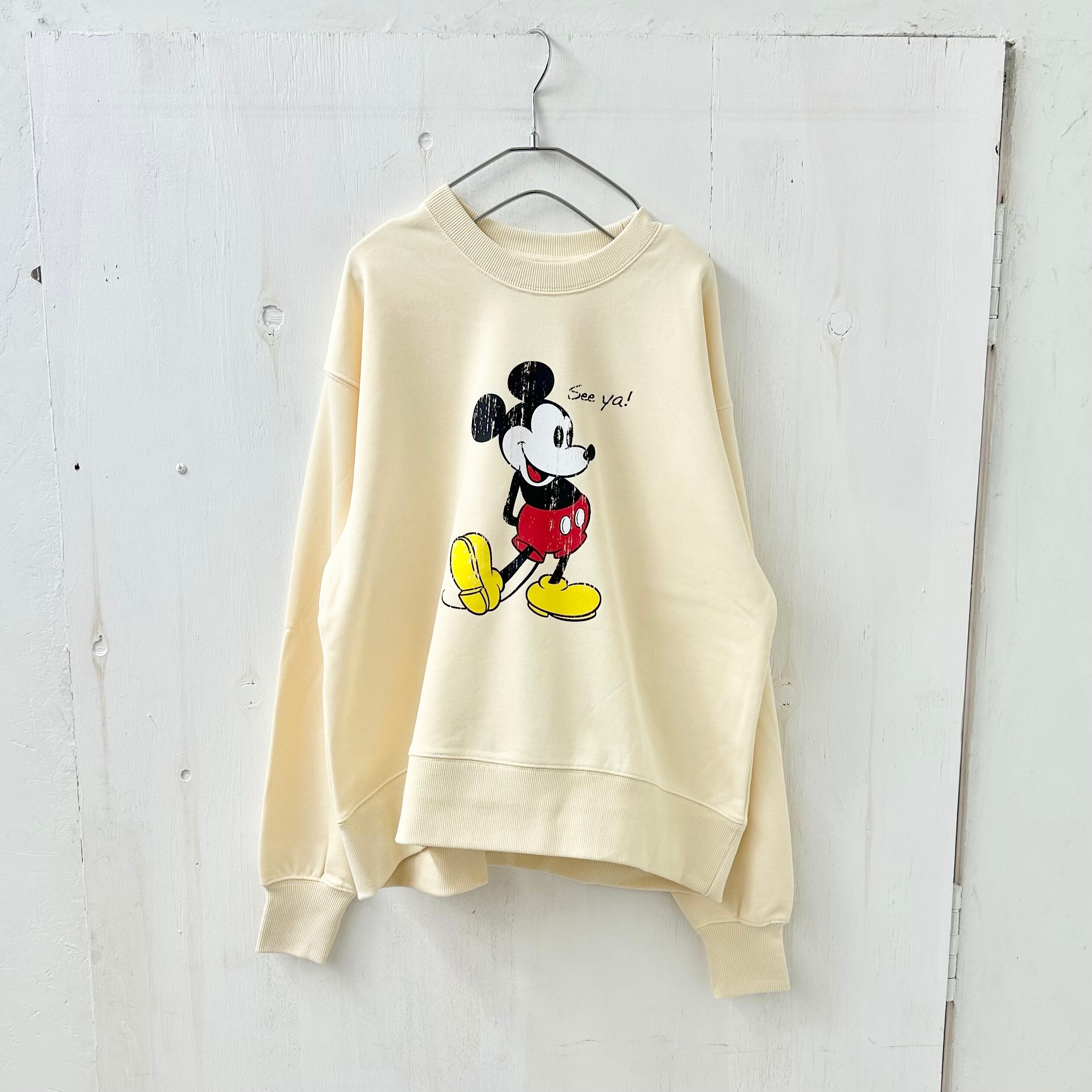 こちらは、絶妙に可愛いサイズ感のトレーナーにカスレ感のあるミッキーをプリントした