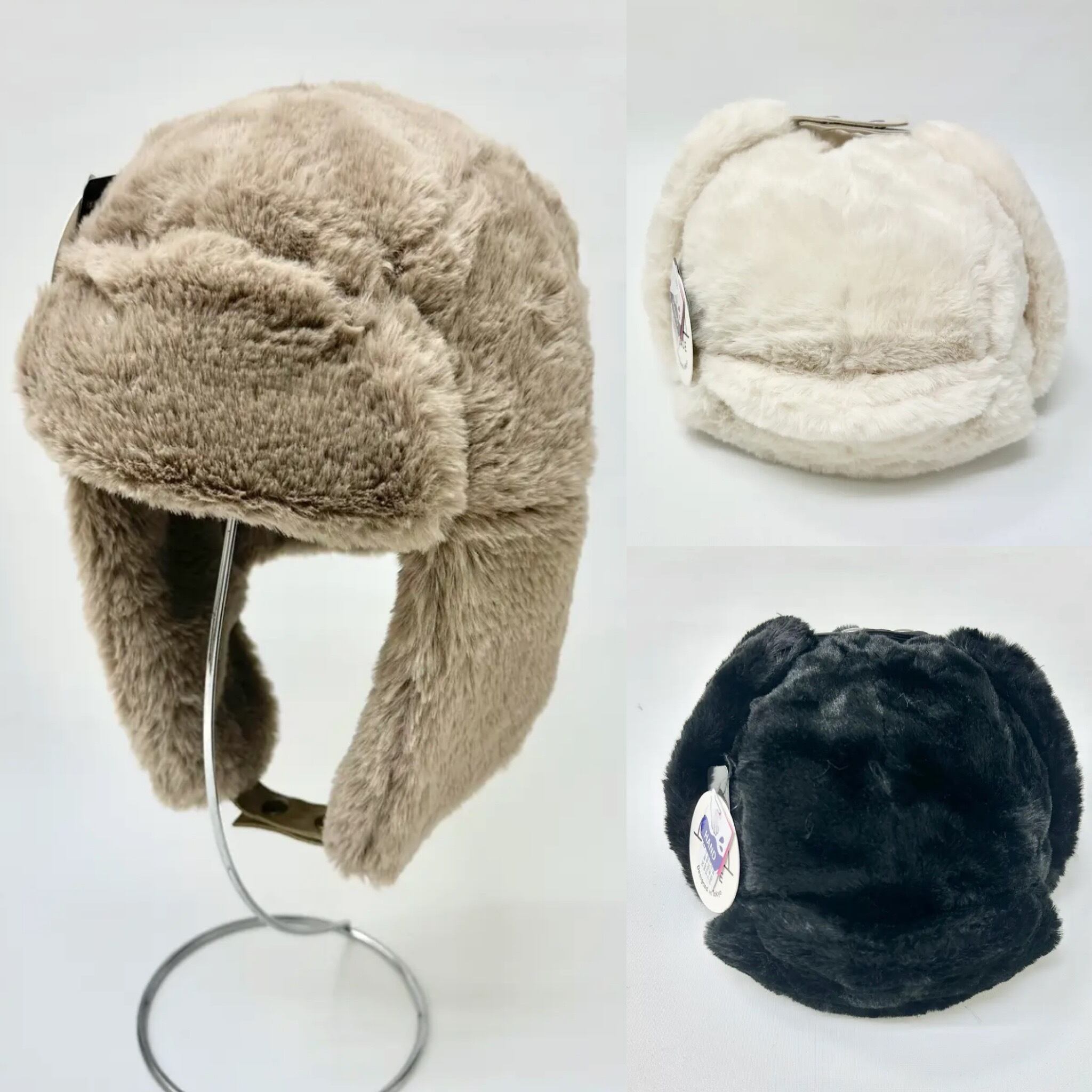 ファー素材のパイロット キャップ。ファーの質感も良く