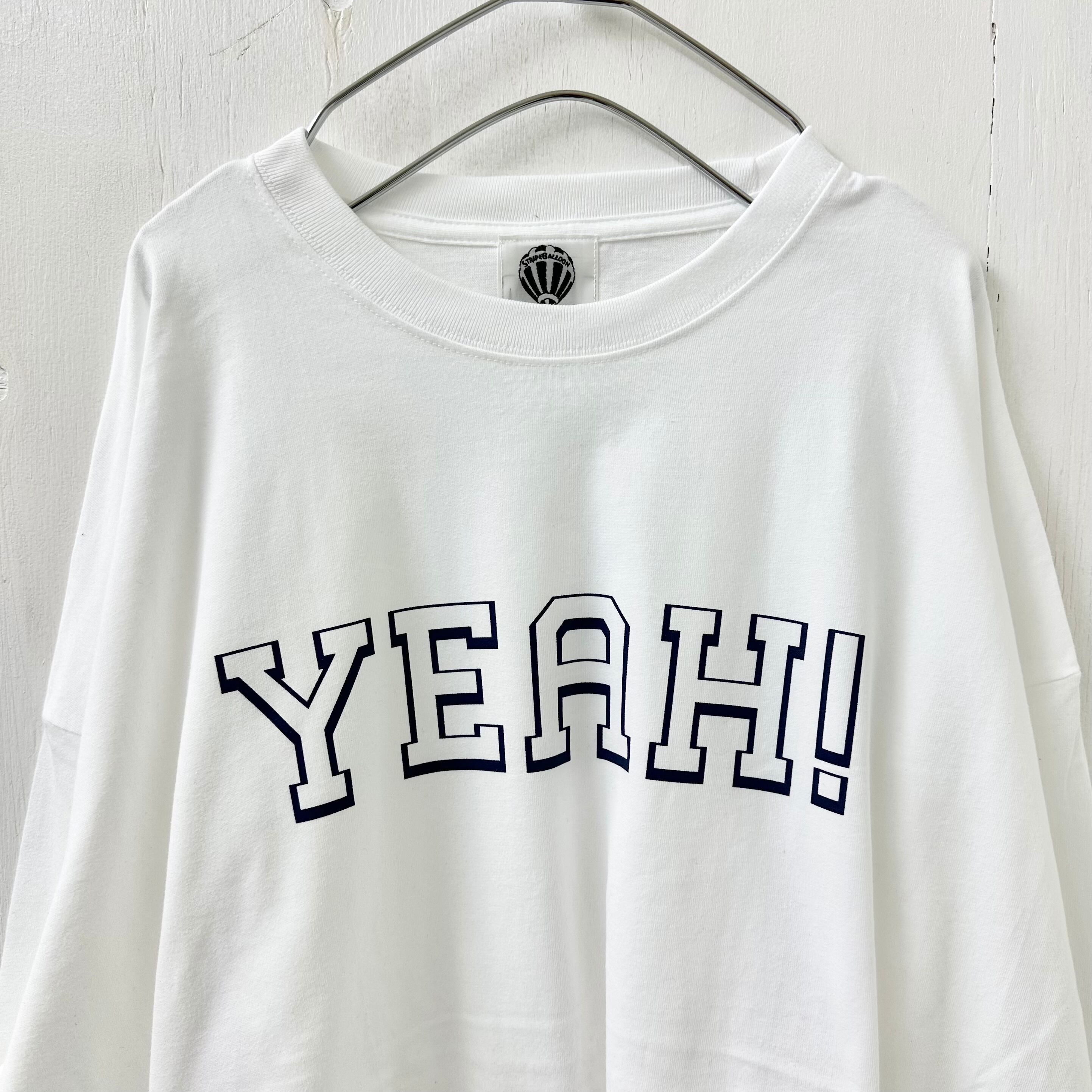 【STRIPE BALLOON】メンズ 長袖 BIG TEE「YEAH!」ホワイトXダーク ネイビー