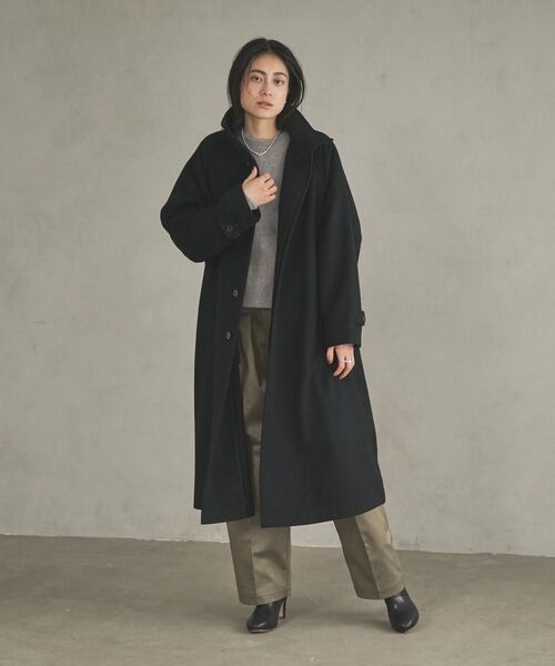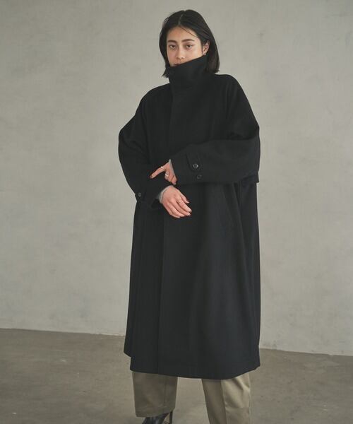 今季も見逃せないスタンドカラーに仕上げたロングコート。