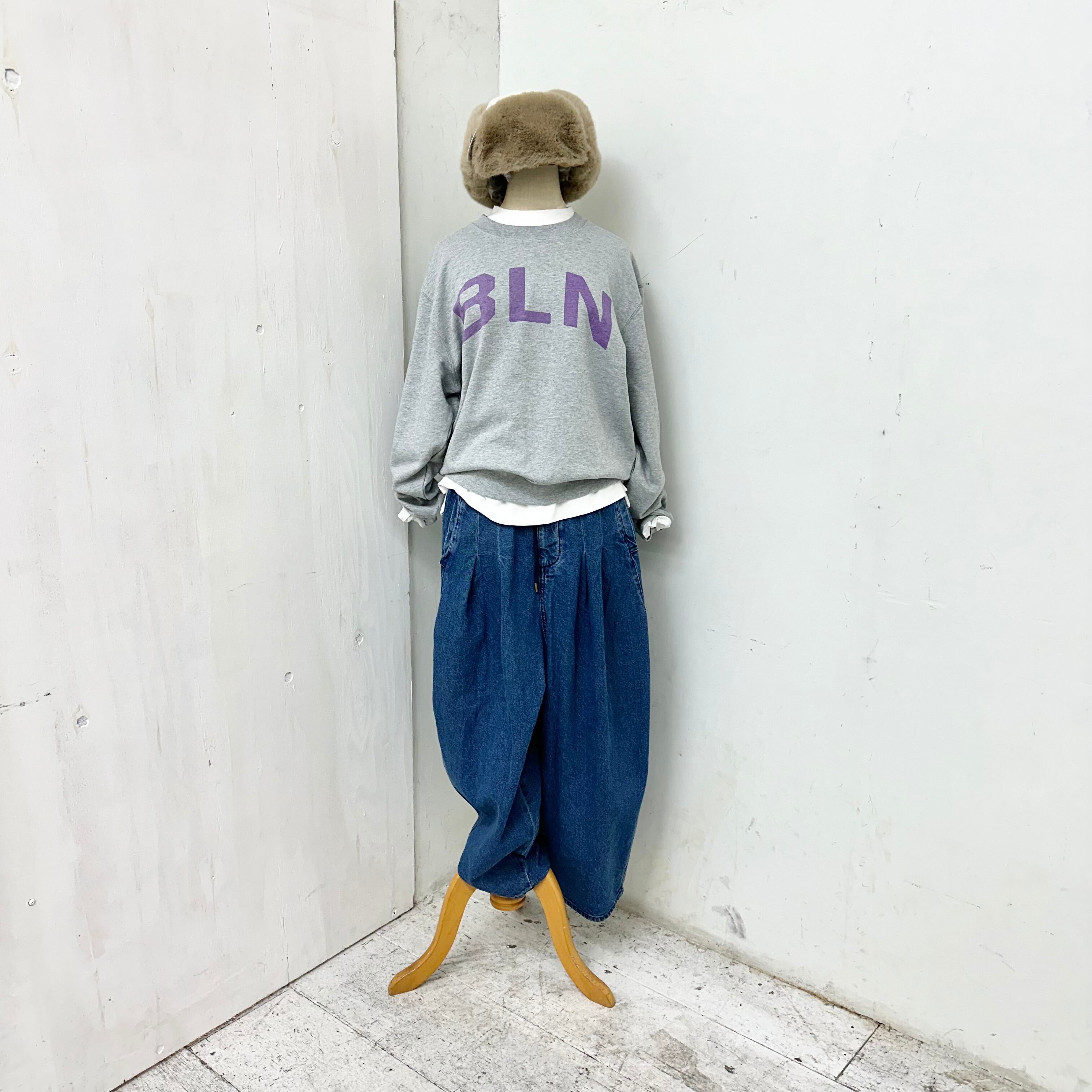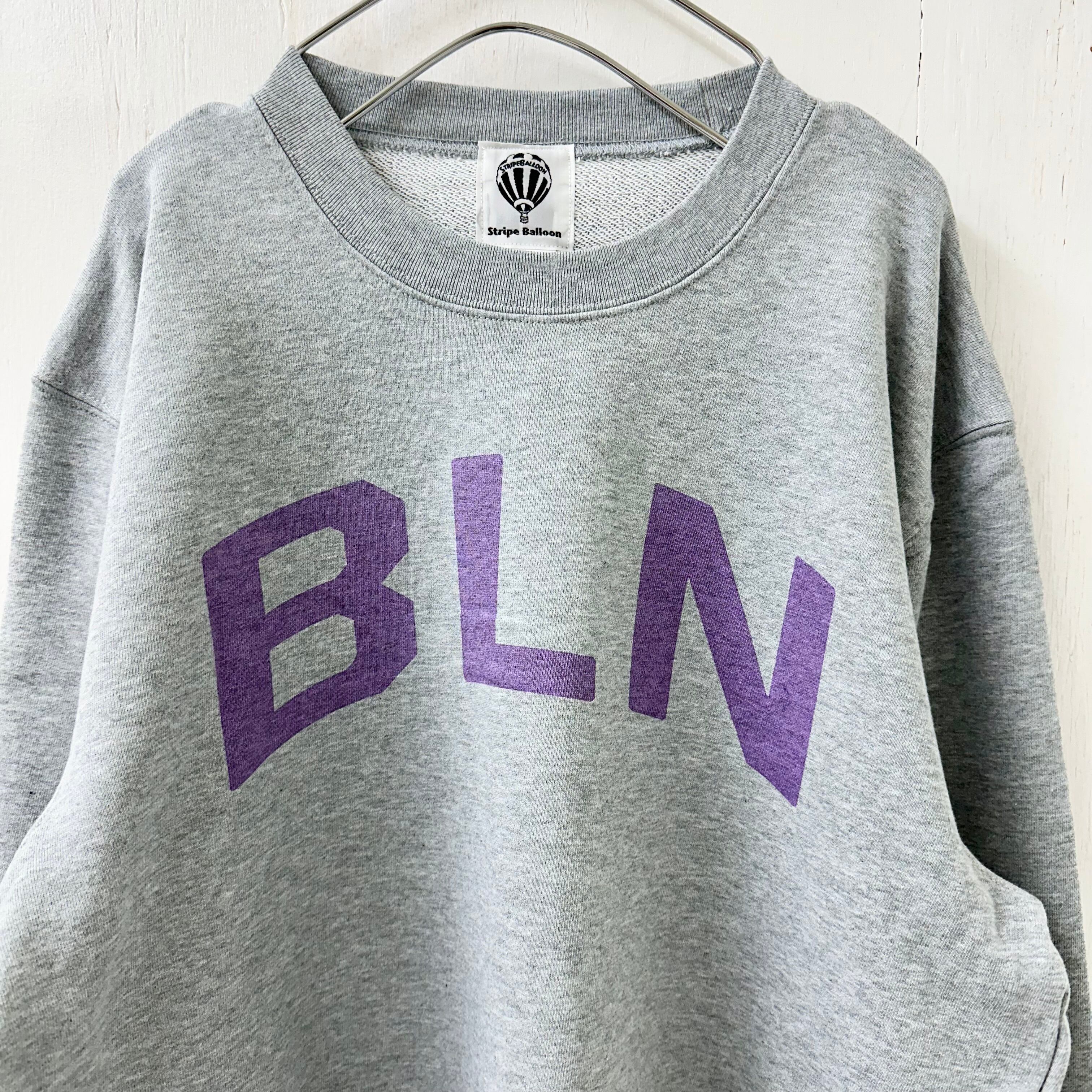 【STRIPE BALLOON】メンズ 裏パイル トレーナー 10oz「BLN」杢グレーXパープル