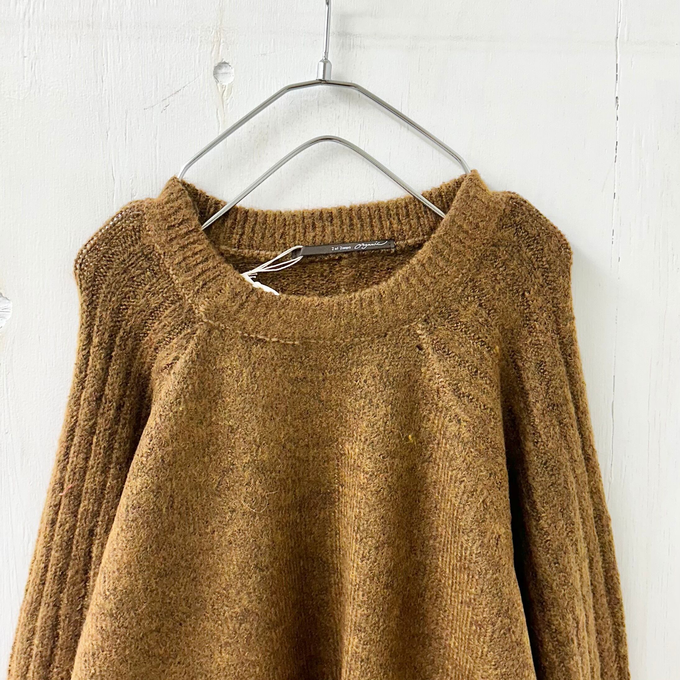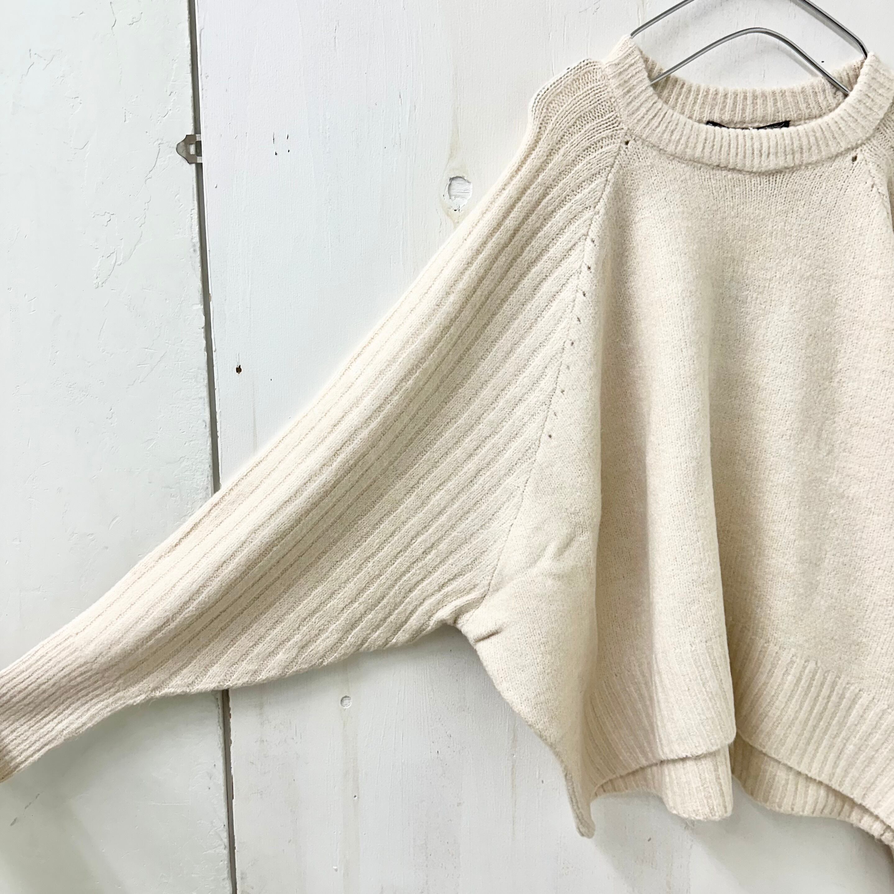 ヤク ライク ヤーン リブ ドルマン ショート ワイド ニット プルオーバー