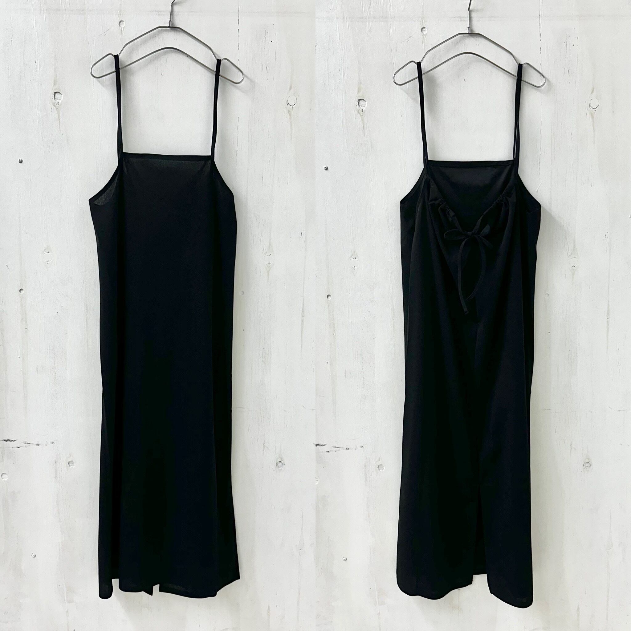 押さえておきたい一着。こちらはブラックカラーの定番キャミワンピ。