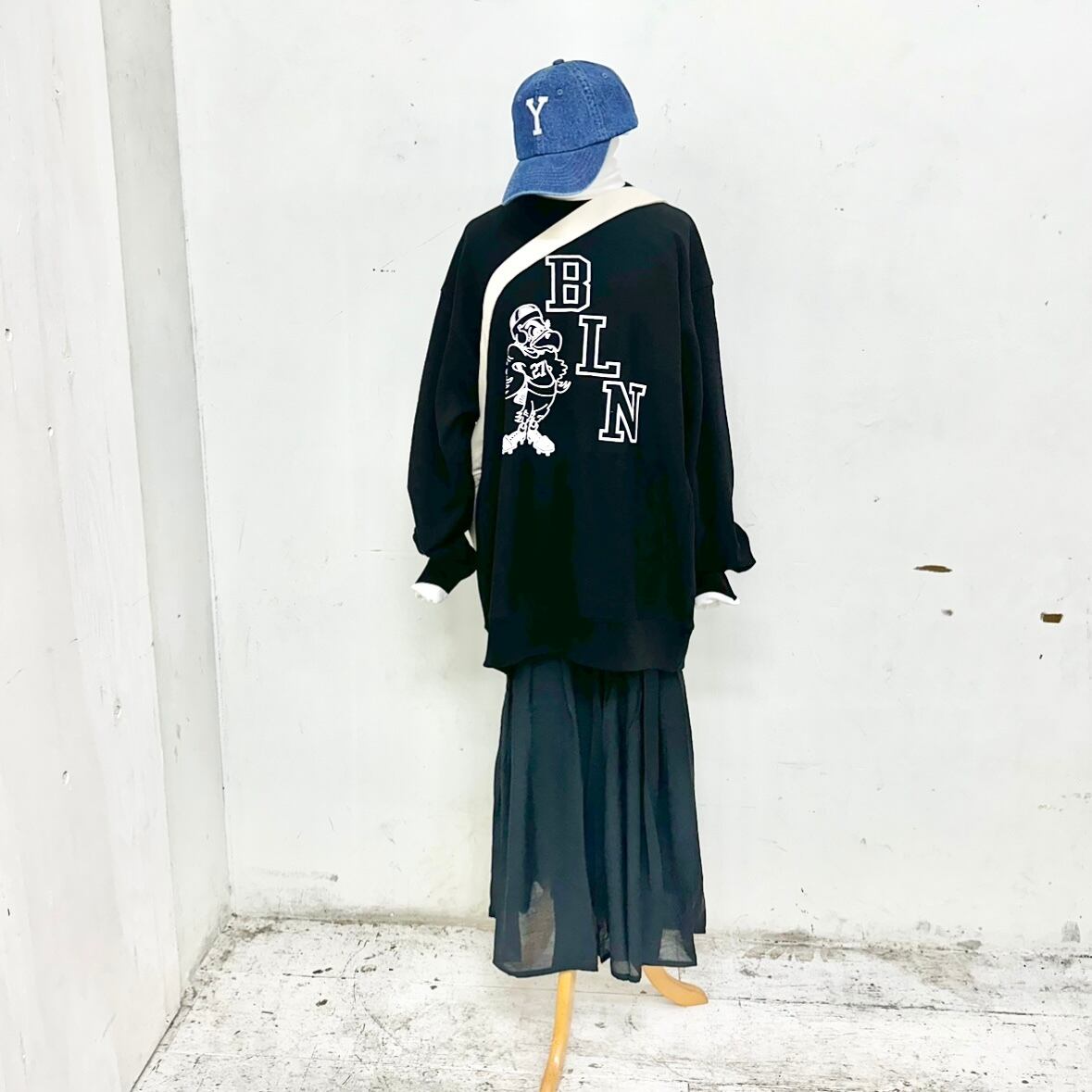 ギャザーたっぷりで女子可愛い雰囲気のアイテムですが、トレーナーやTEEと合わせて◎