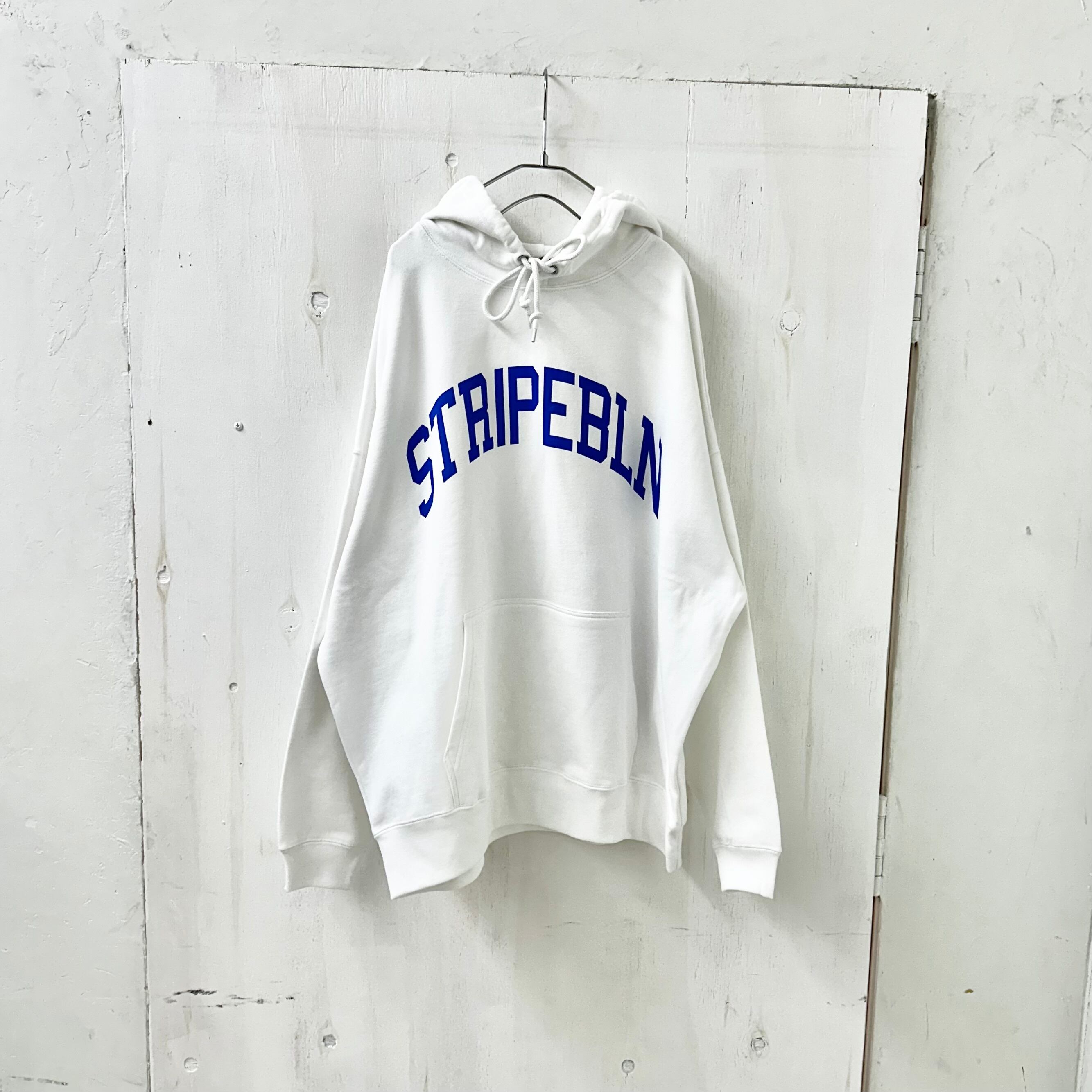 【STRIPE BALLOON】メンズ 裏パイル BIG シルエット パーカー 「STRIPEBLN」ホワイトXロイヤルブルー 10oz