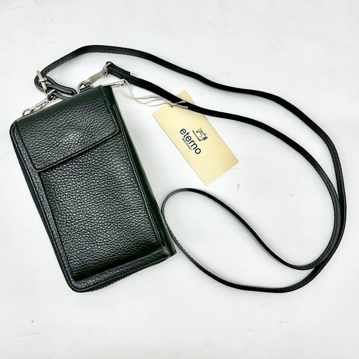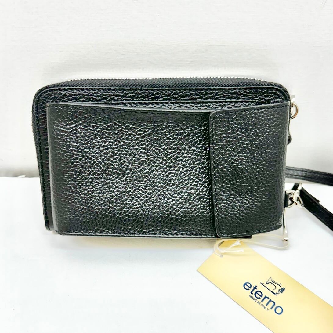 【eterno】シボ革 2WAY ショルダー ウォレット&モバイル ケース/ NERO(ブラック) made in ITALY