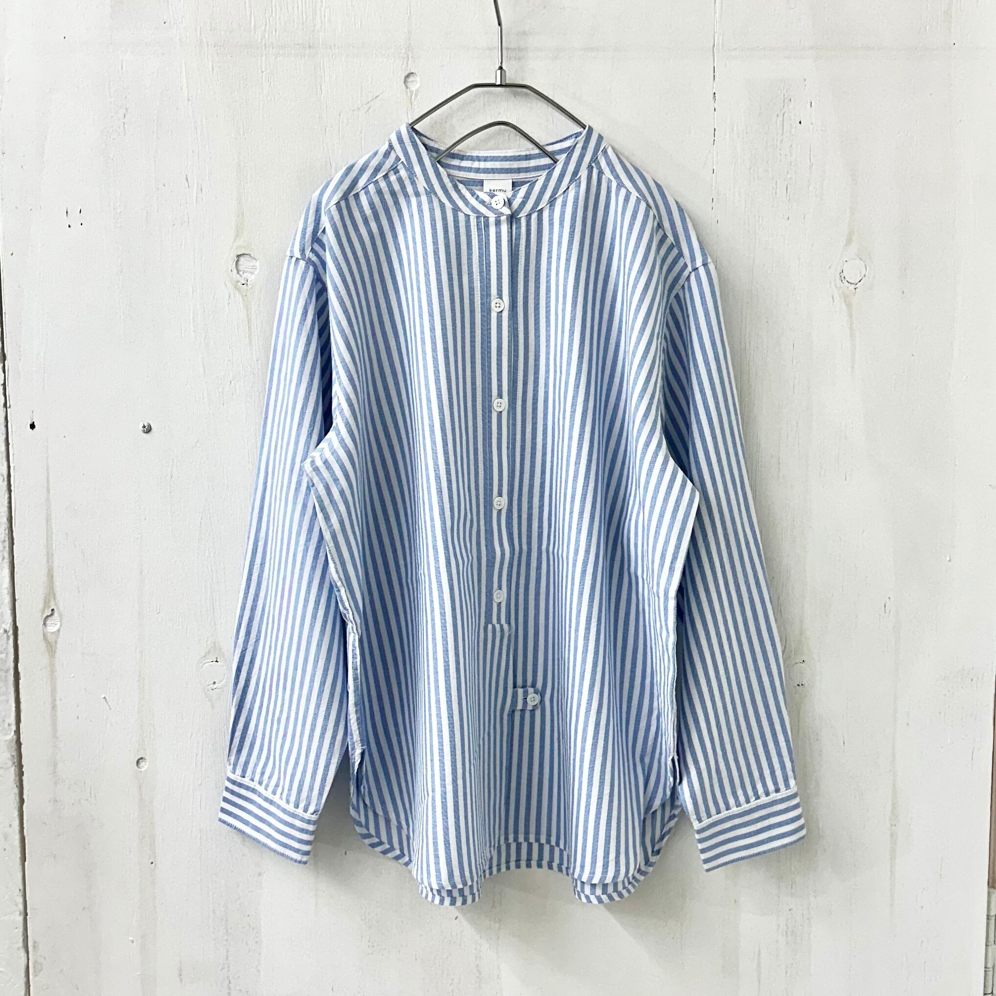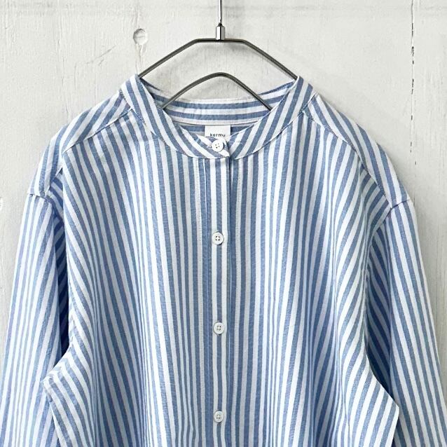 オックス バンドカラー BOX シャツ 『ストライプ』 ”カーボン オフ セット”