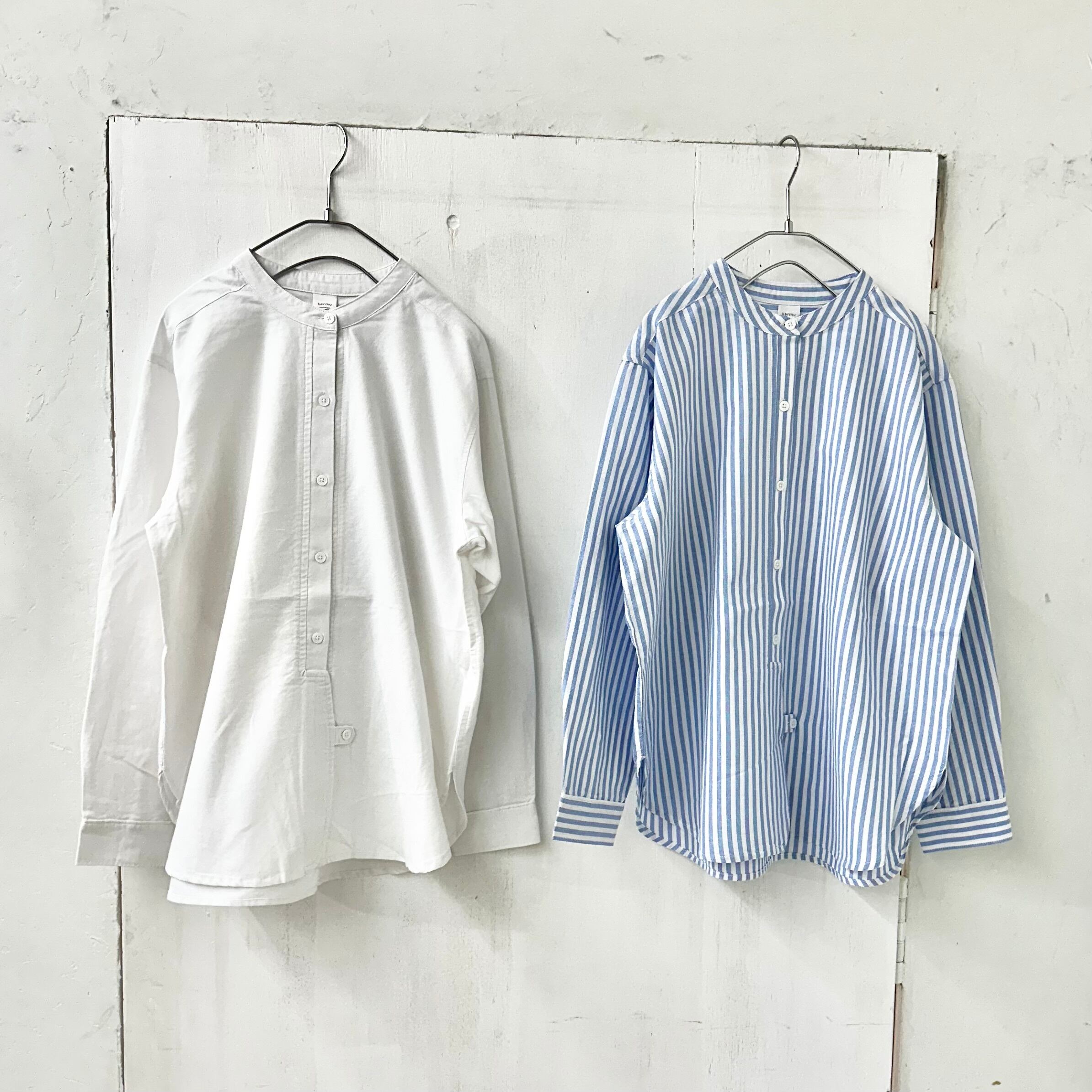 洗いざらしの質感がナチュラルで存在感のあるバンド カラーのブラウスがリリース。