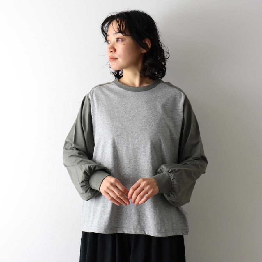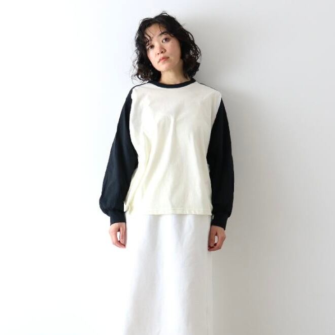 【harmonie / アルモニ】オーガニック コットン ふんわり天竺 配色 パフスリーブ ラグラン プルオーバー