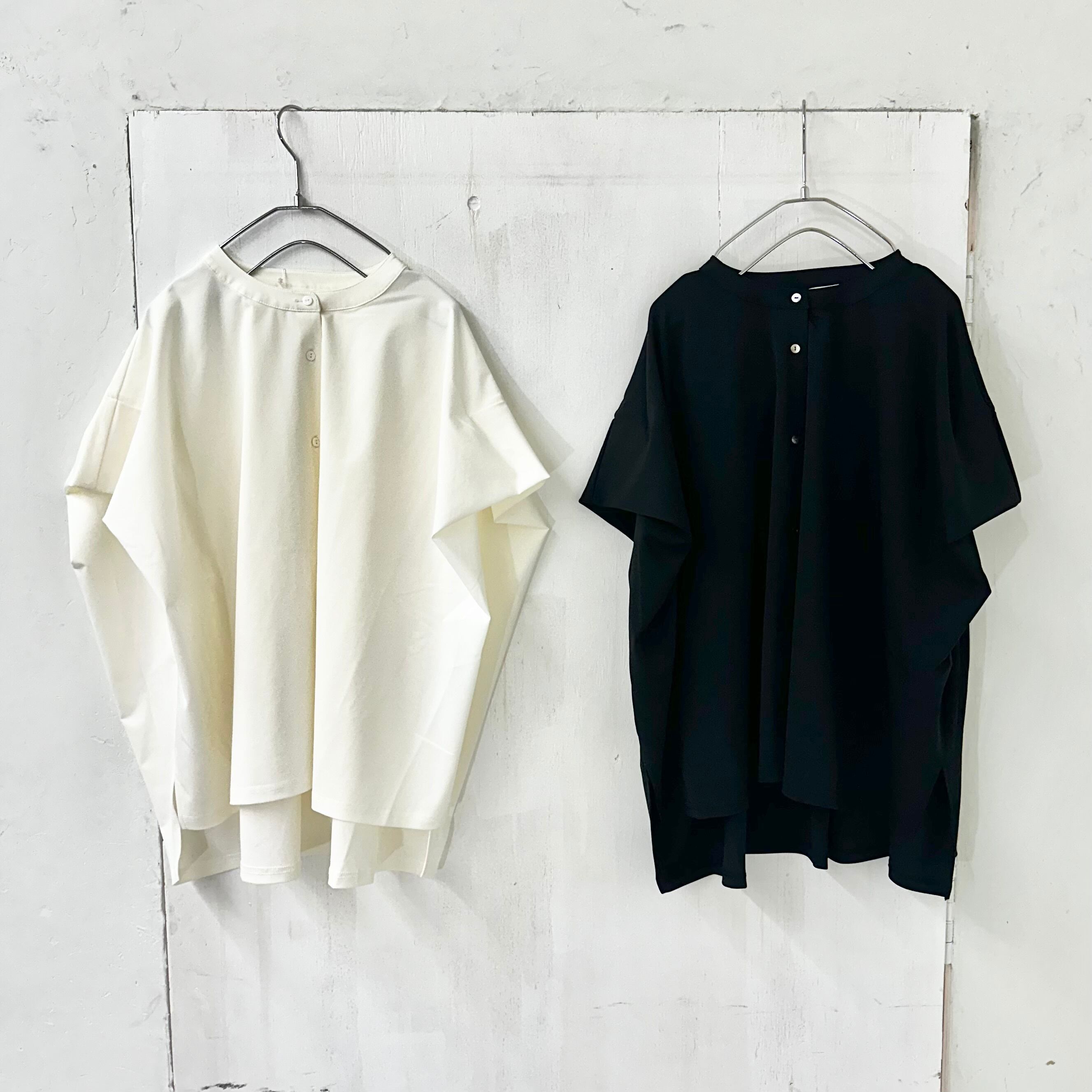 ”サークル ストレッチ” 変形 スリーブ カット ブラウス