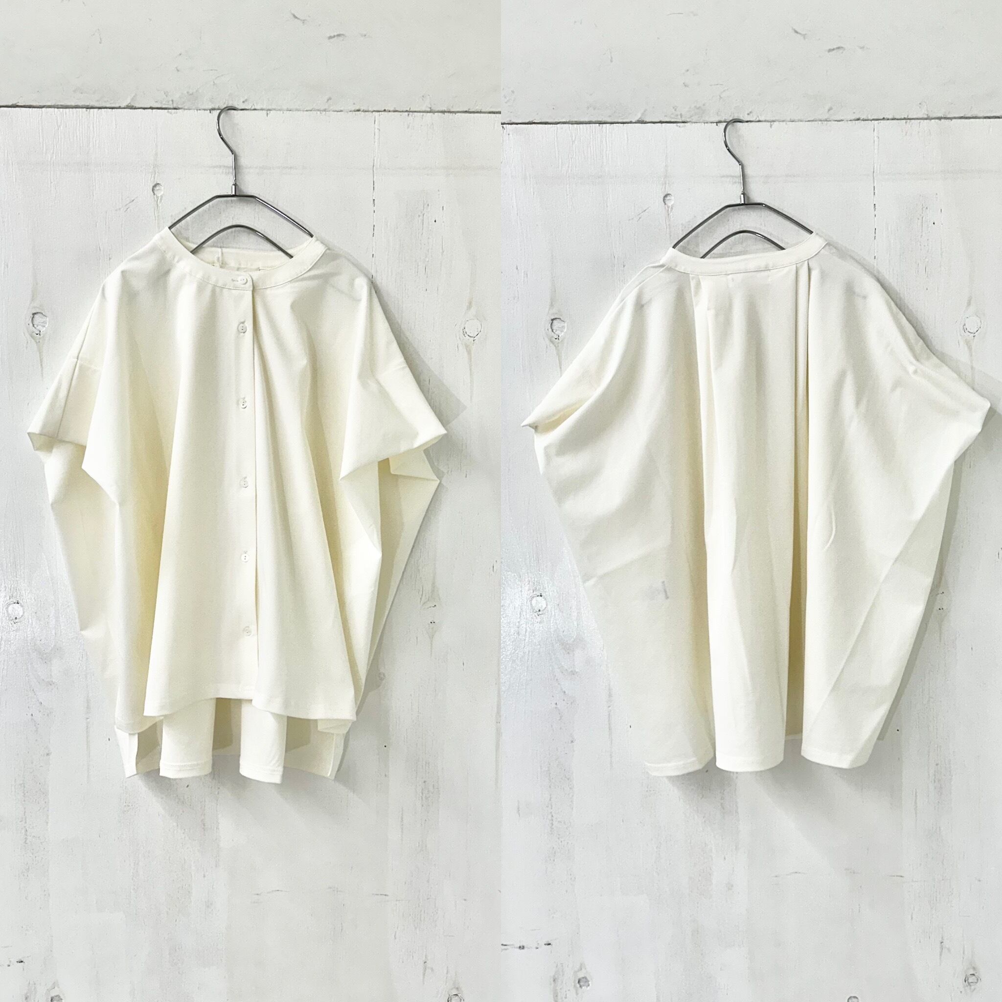 カット素材なのでブラウスというよりカーディガン的なテイストに。
