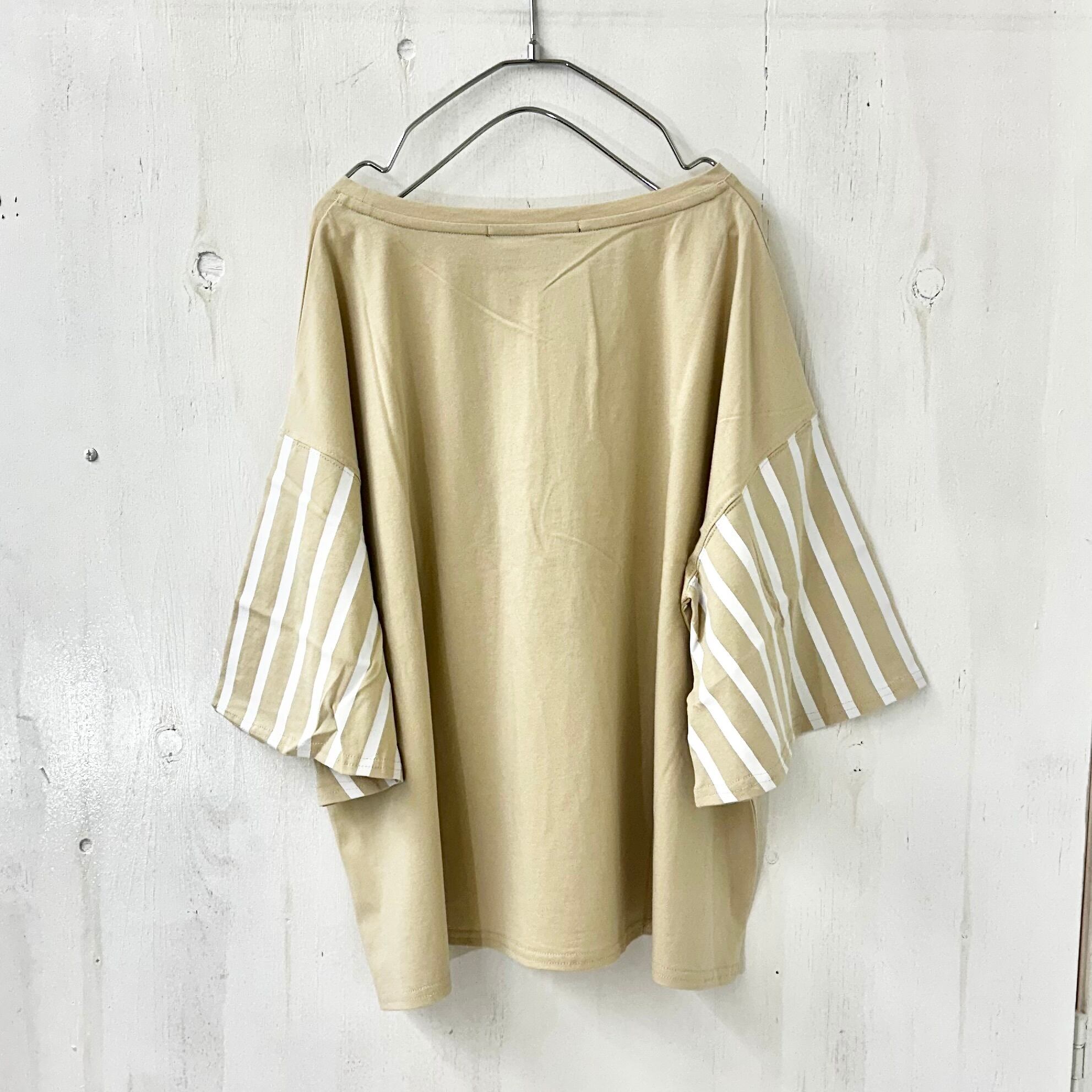 袖にストライプ柄のブラウスを切り替えた BIG TEE。