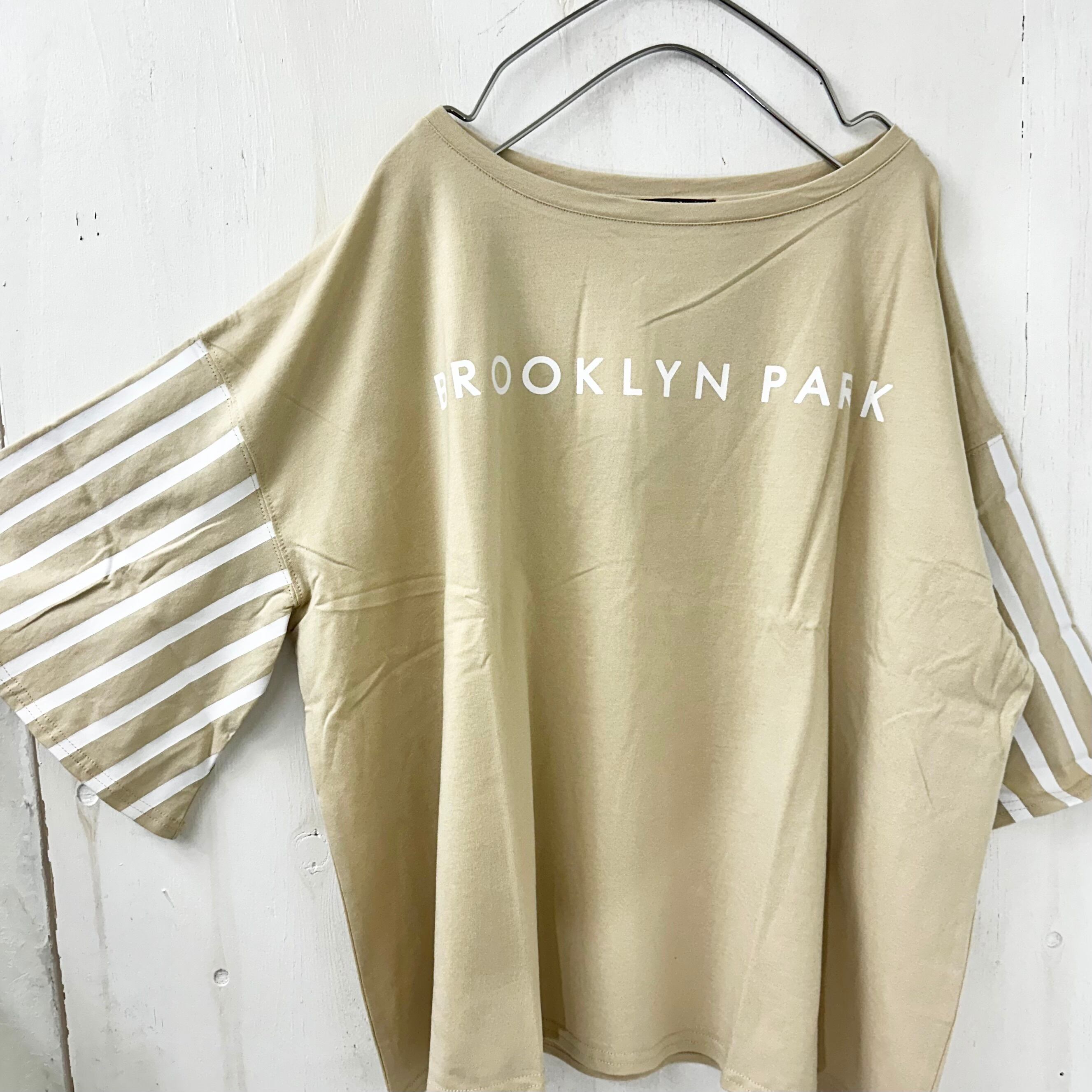 シルケット天竺 袖ストライプ 切替 BIG TEE 「BROOKLYN PARK」プリント