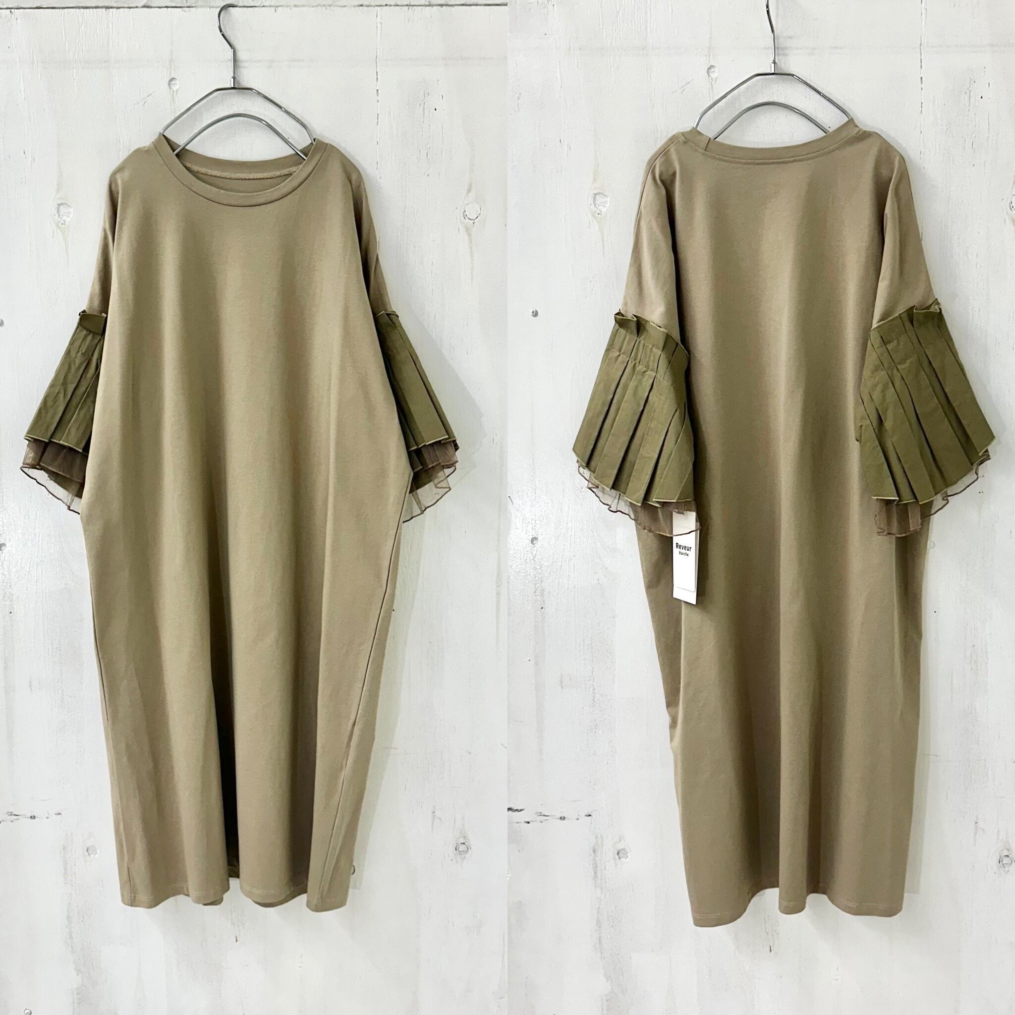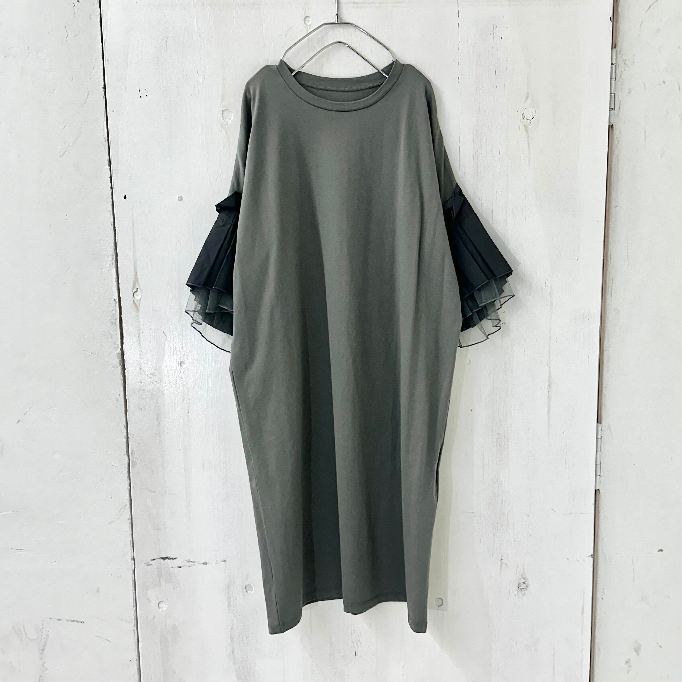 袖のタック スリーブが女子可愛いカットソー ワンピース。