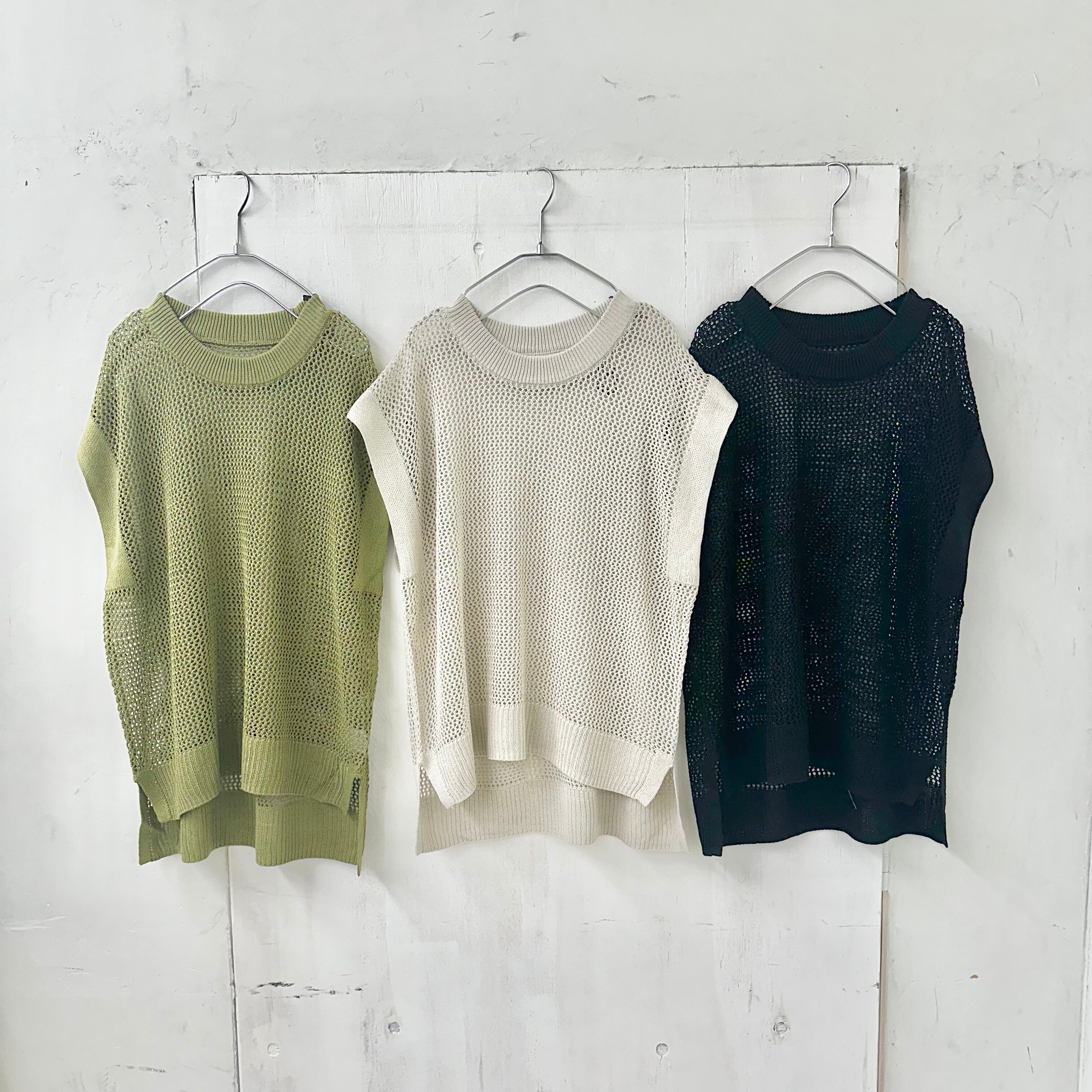 麻の様な質感がさらりと着心地がよいニット ベストが登場。