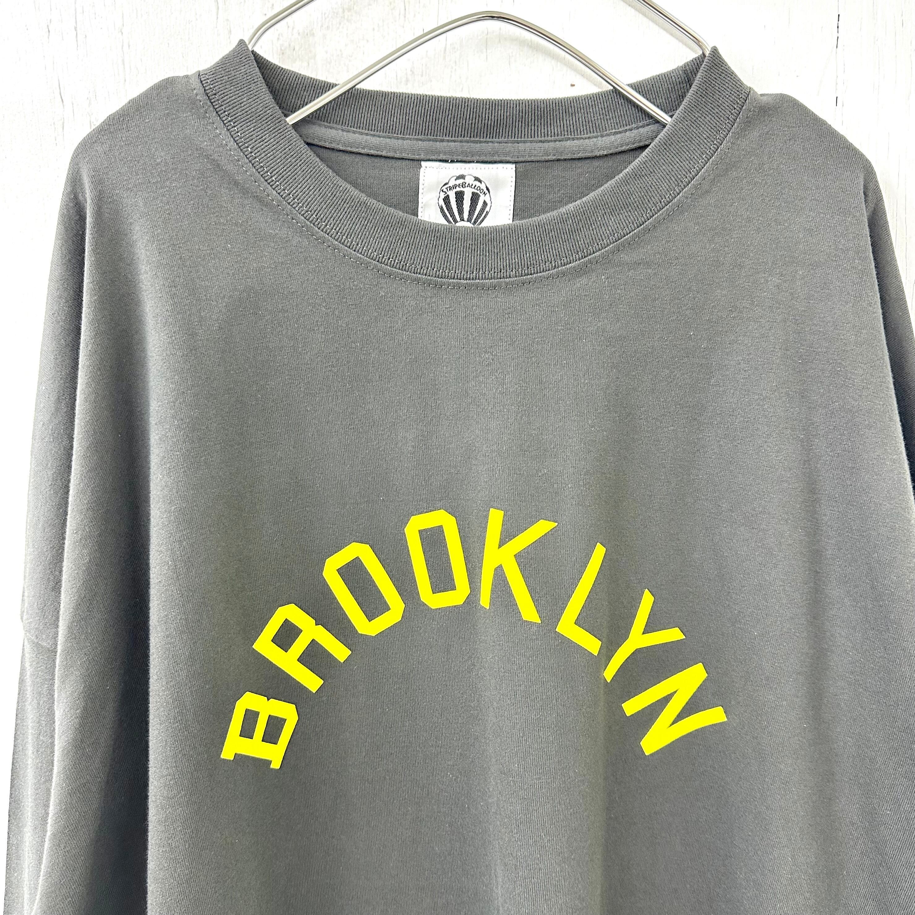 【STRIPE BALLOON】ビッグ シルエット ロンTEE 5.6oz 袖リブ「BROOKLYN」スミxレモン フロッキー プリント