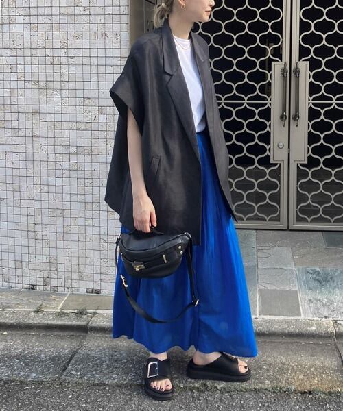 ハリ感を生かしたワイドシルエットなのでしっかりと腰回りもカバーしてくれます。