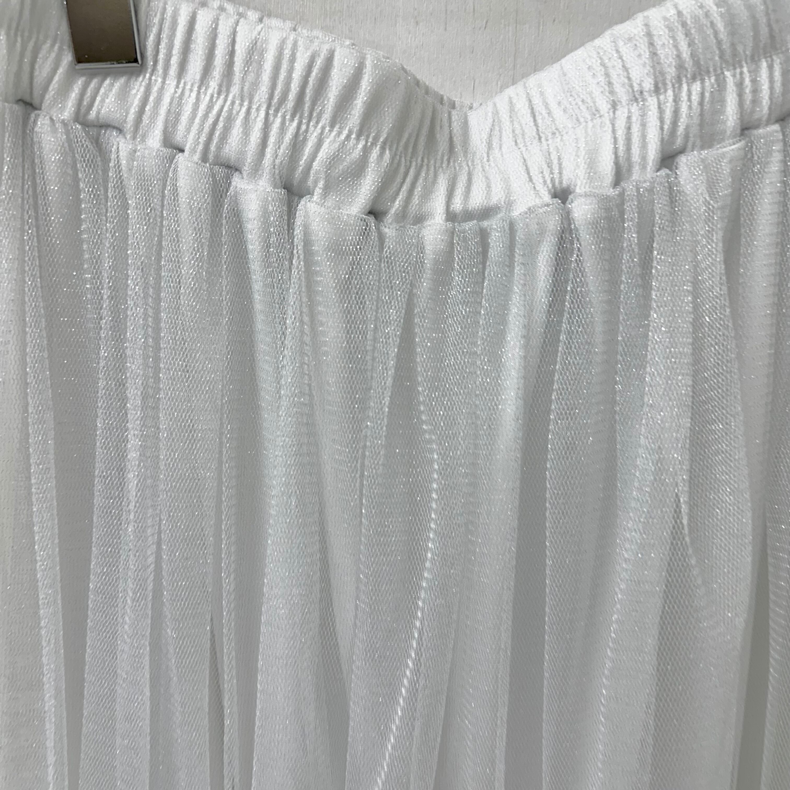 可愛いチュールにシルバーのラメが可愛いのギャザー ロング スカート