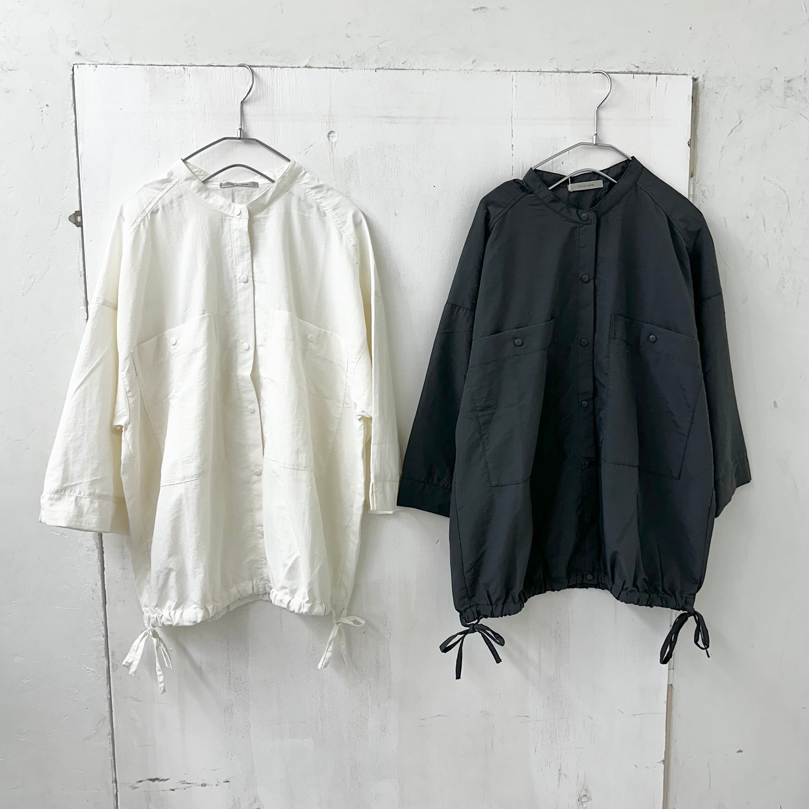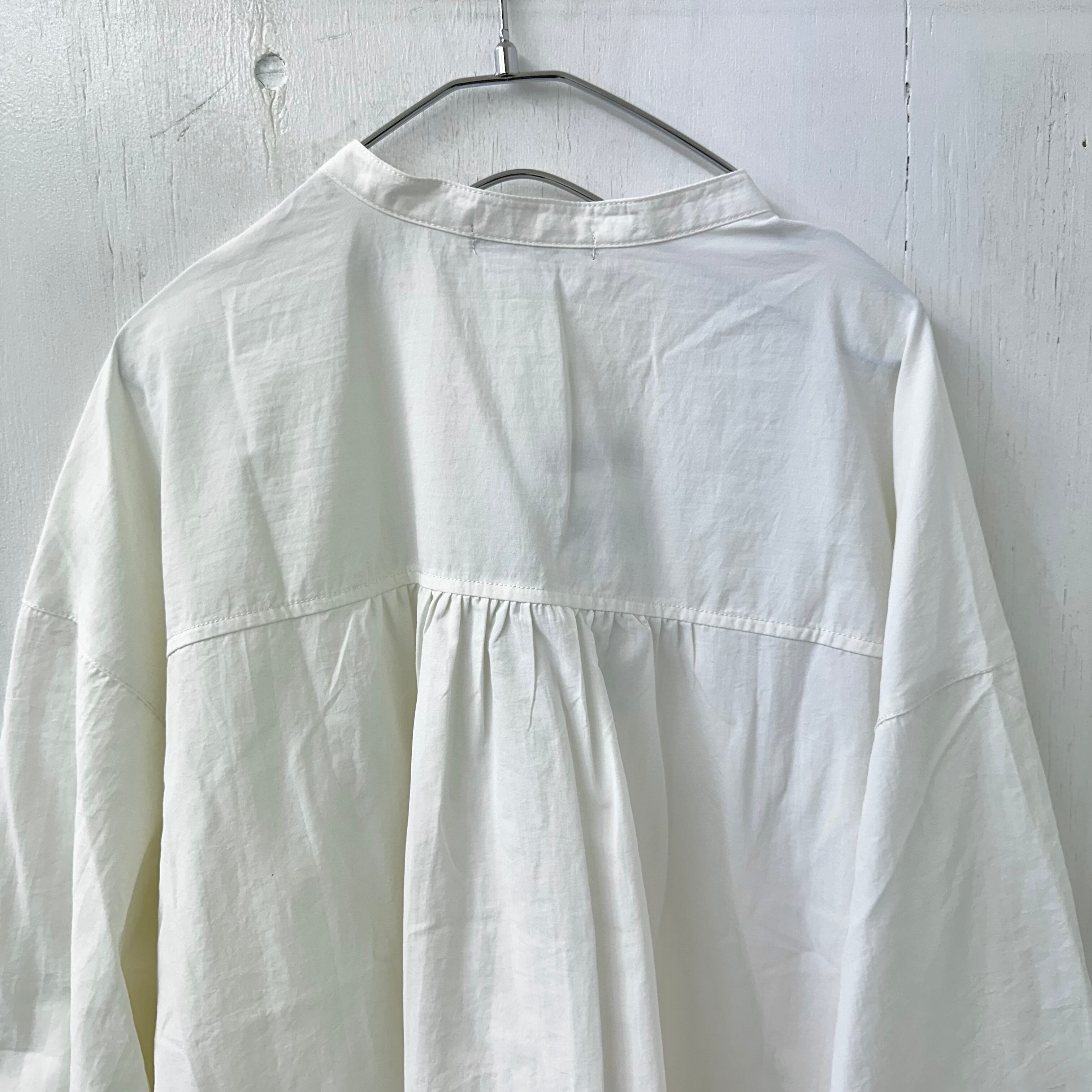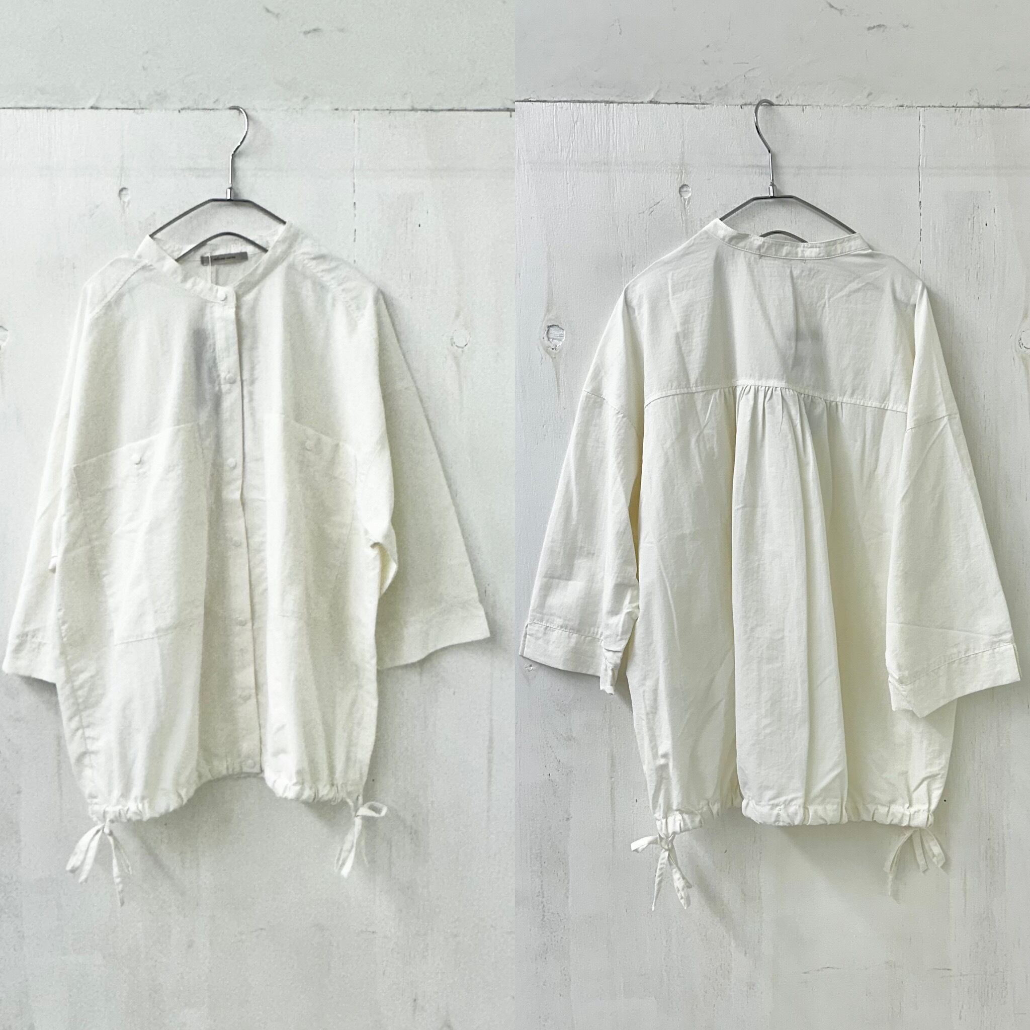 バンドカラーのブラウス。袖のスリットに裾のバルーンアレンジ