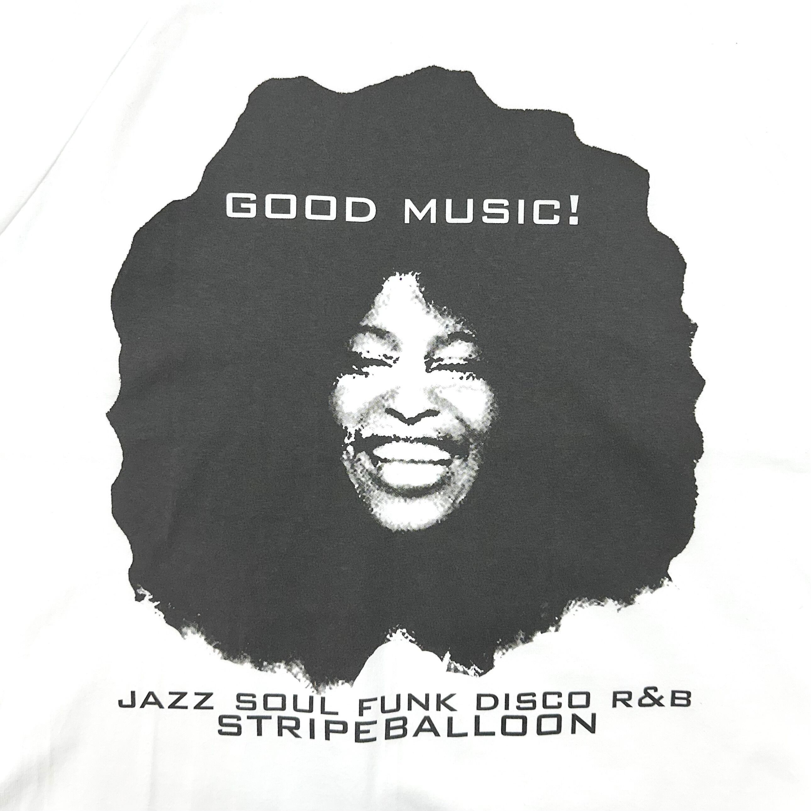 【STRIPE BALLOON】ラグラン 7分袖 TEE『GOOD MUSIC』ホワイトXブラック染込み