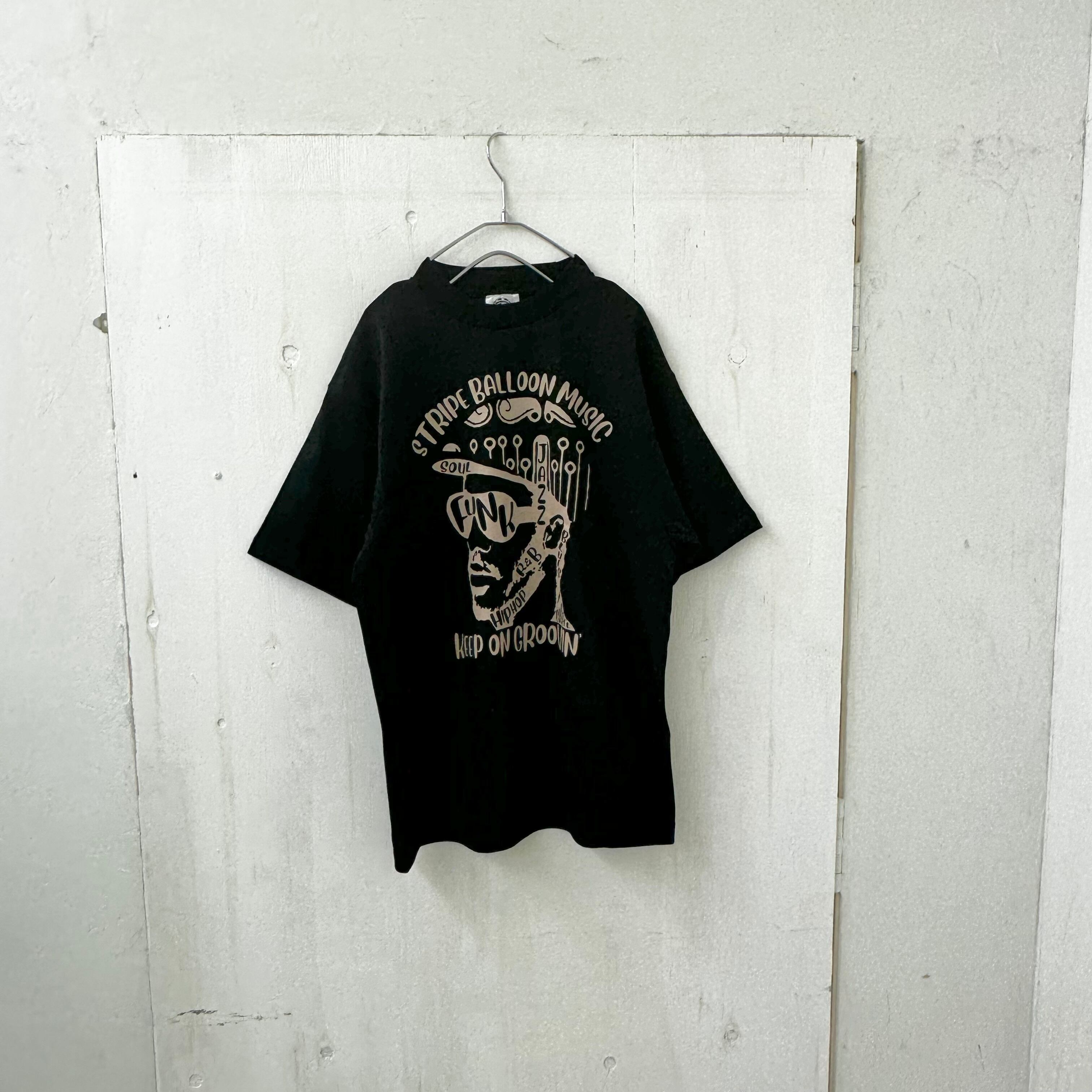 【STRIPE BALLOON】7.1oz オープン エンド ラギット TEE 『KEEP ON GROOVIN』ブラック X ベージュ