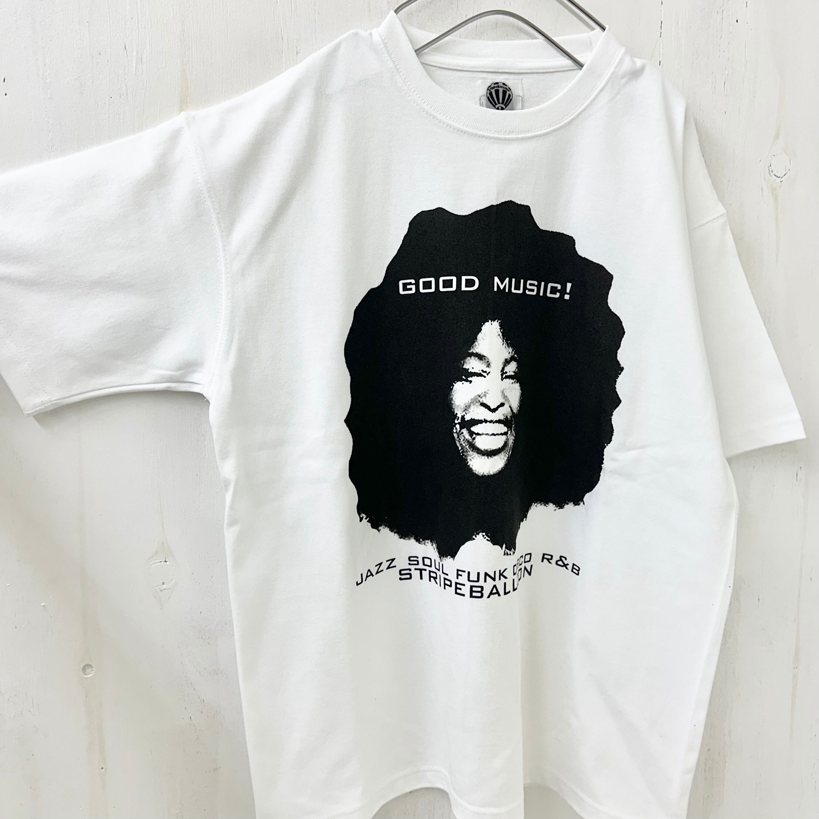 【STRIPE BALLOON】9.1oz マグナム ウェイト BIG TEE 『GOOD MUSIC』ホワイト X ブラック 染み込み