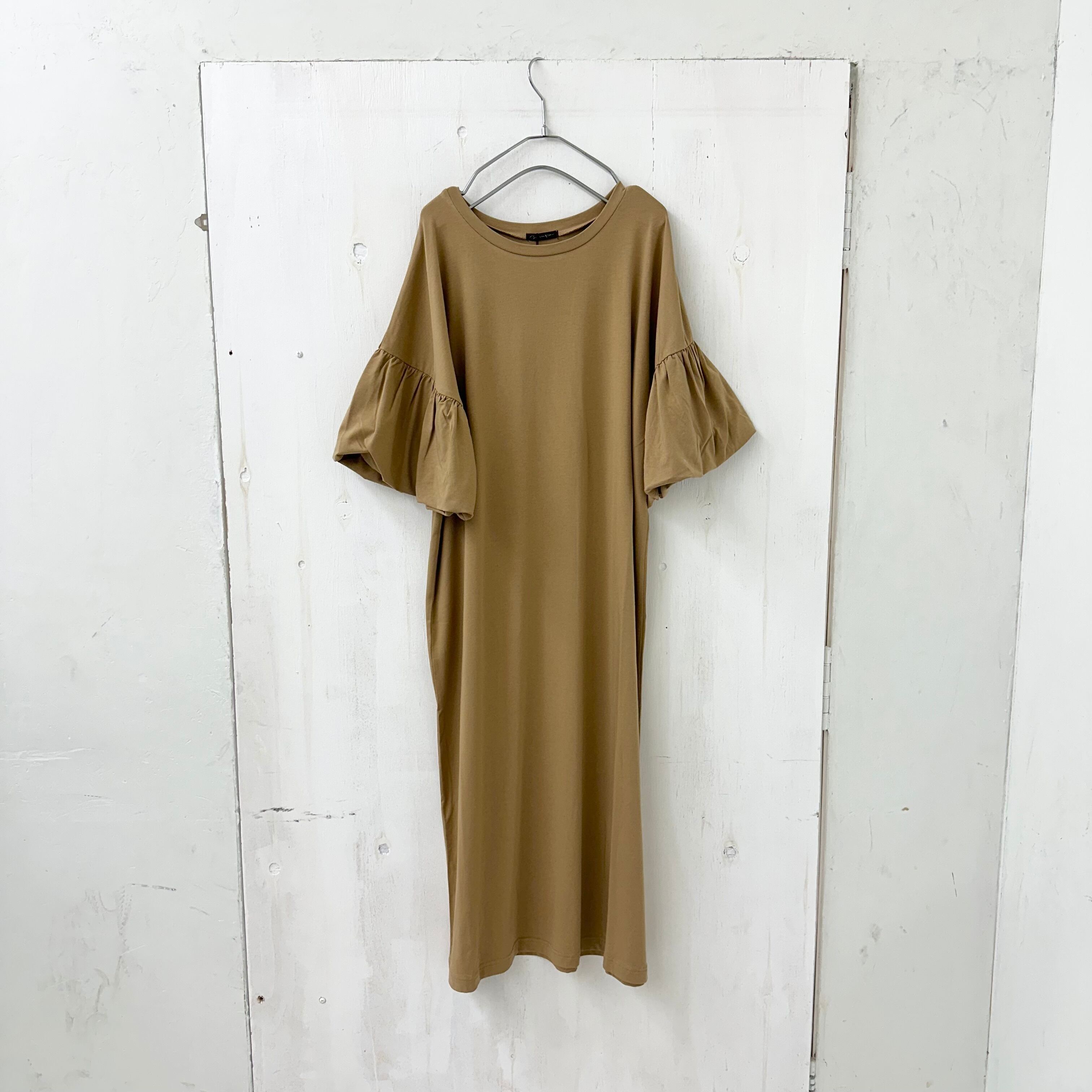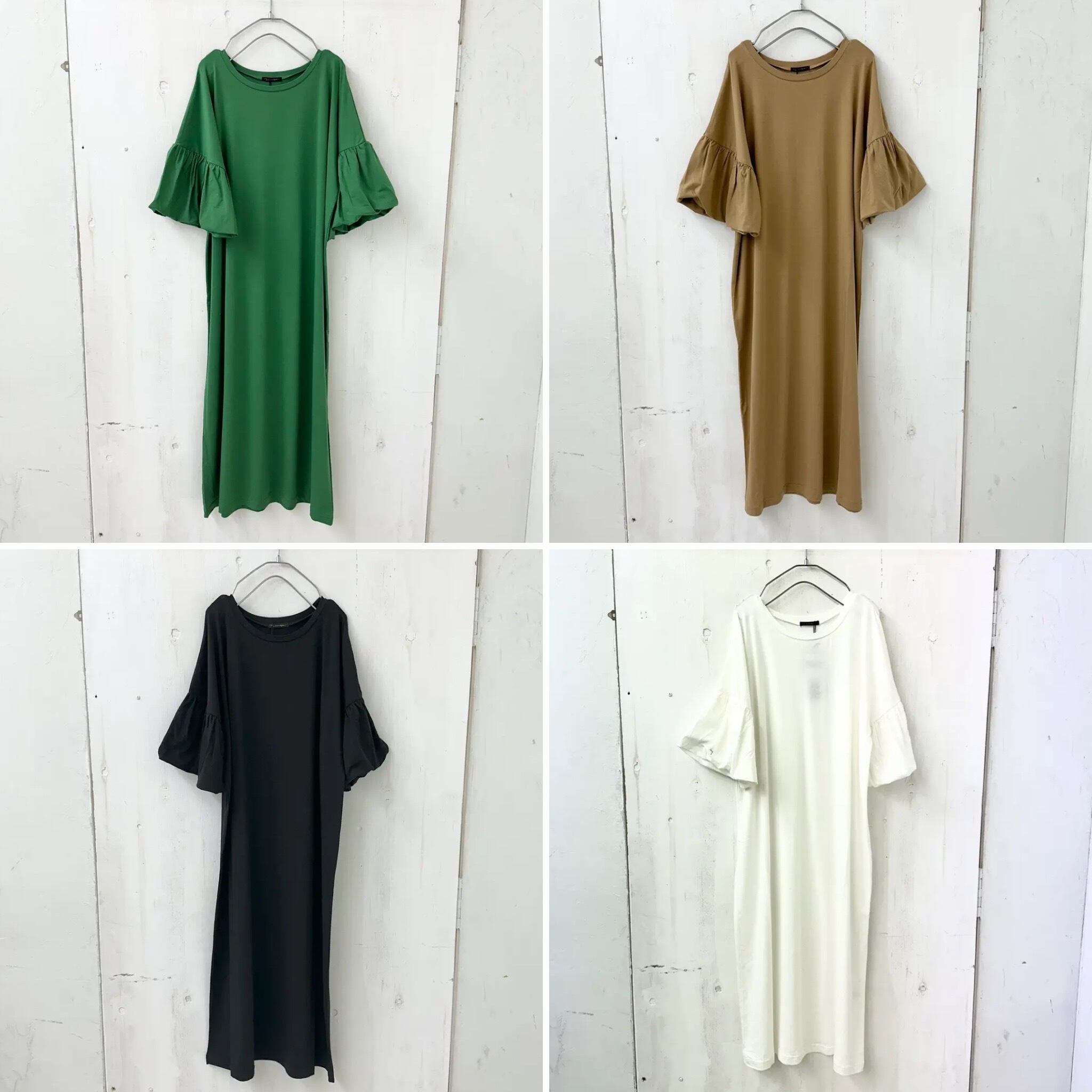 COOL TOUCH「接触冷感」クリア ストレッチ 袖バルーン ロング ワンピース