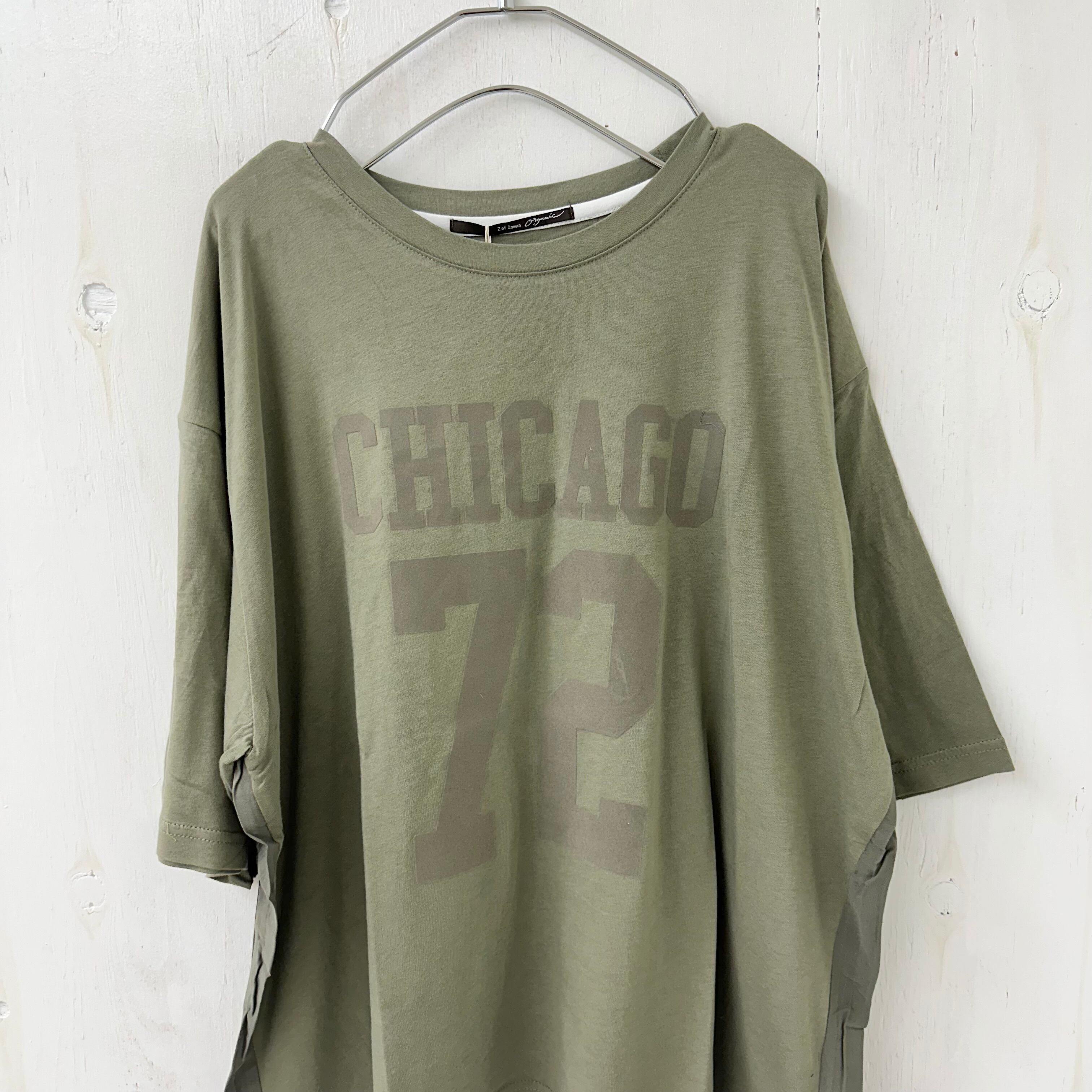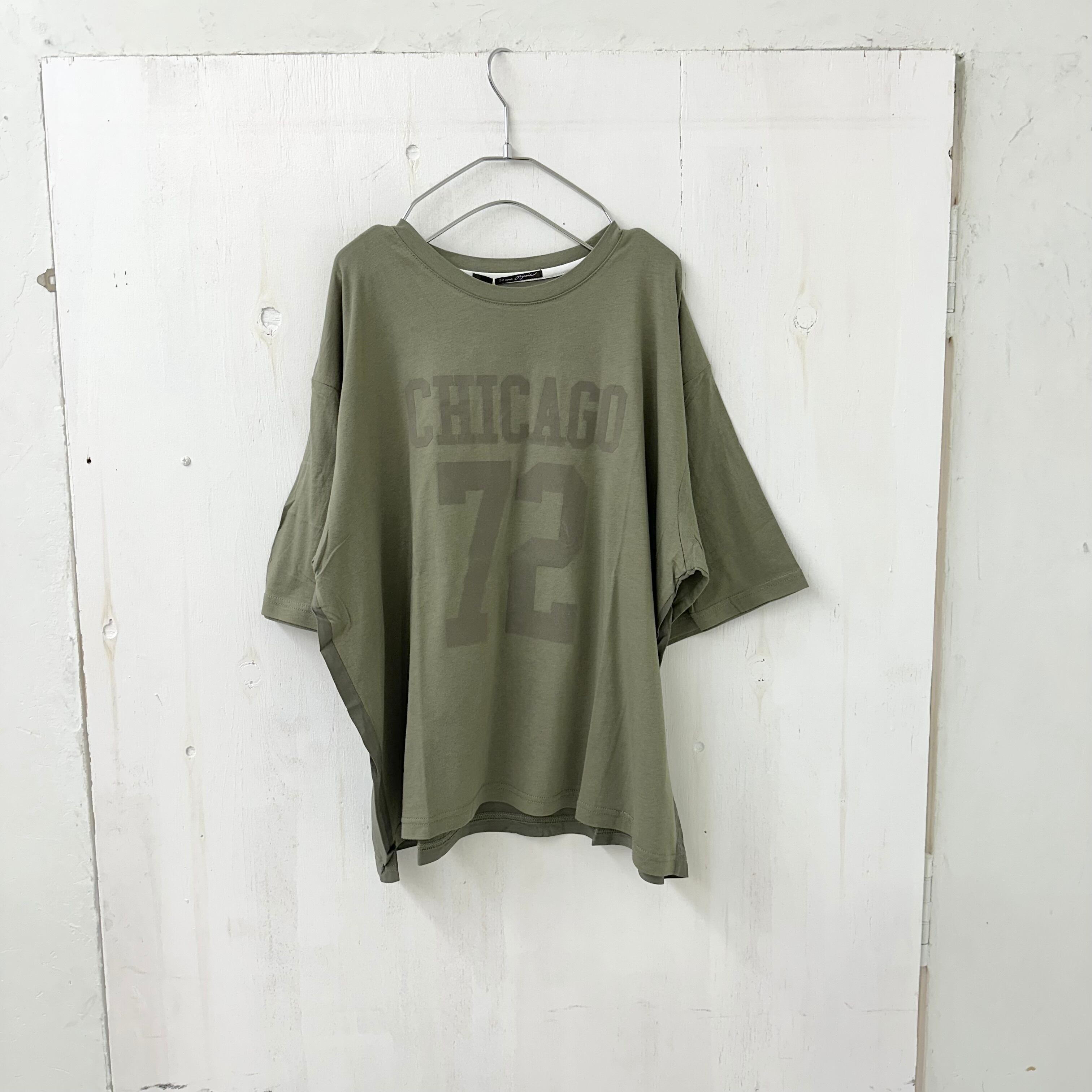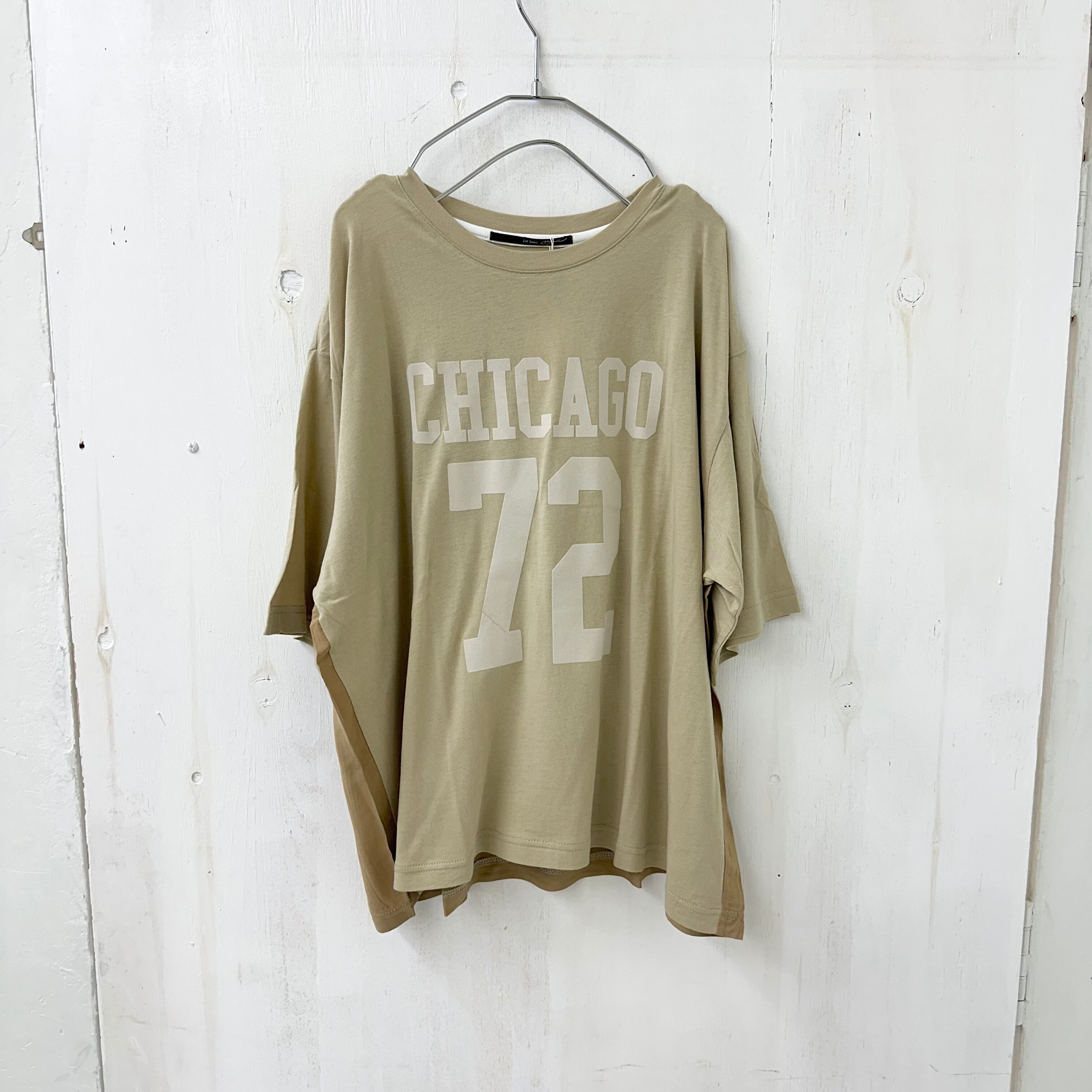 天竺 x スパン ローン 素材切替 BIG TEE 「CHICAGO 72」フロッキー プリント / 464-88461