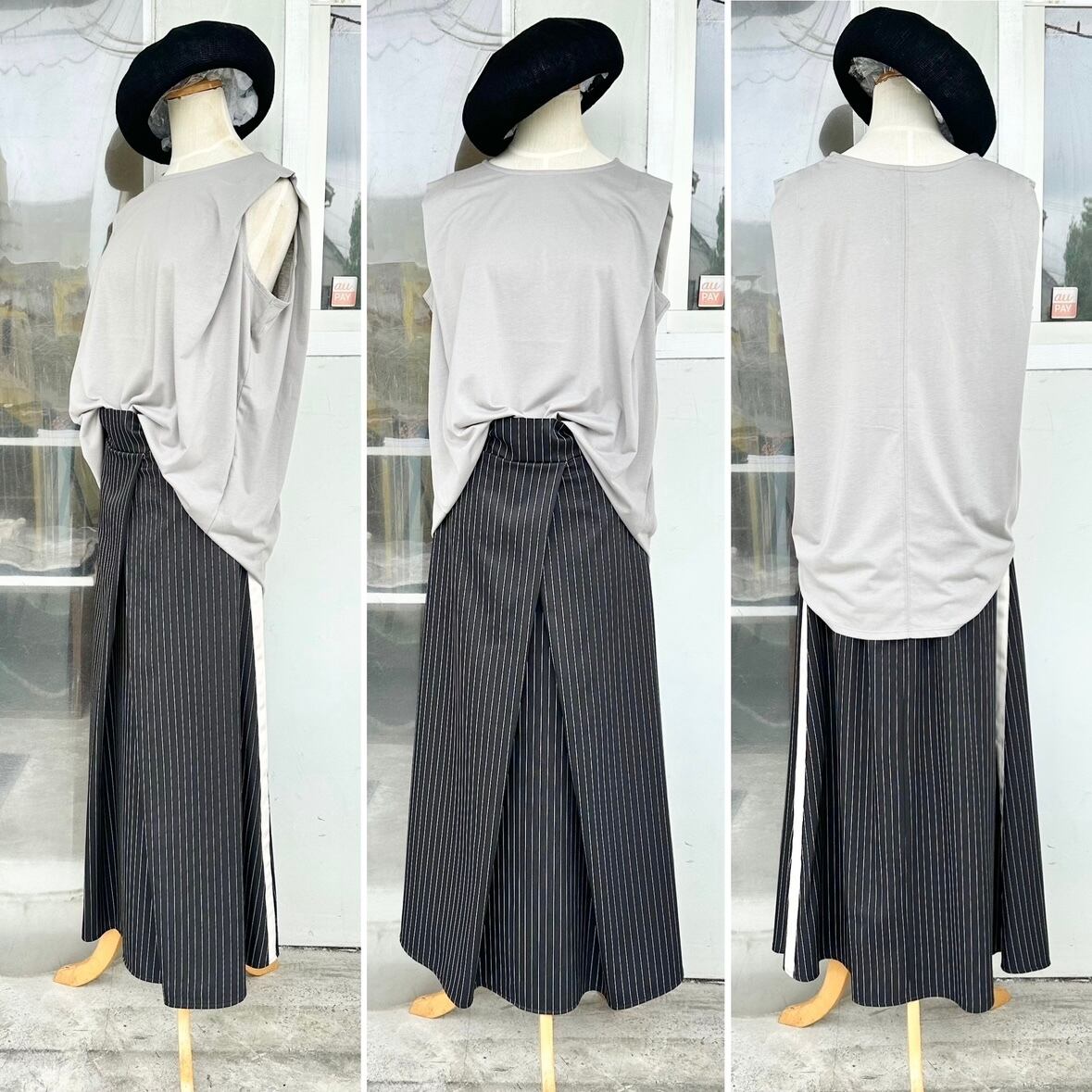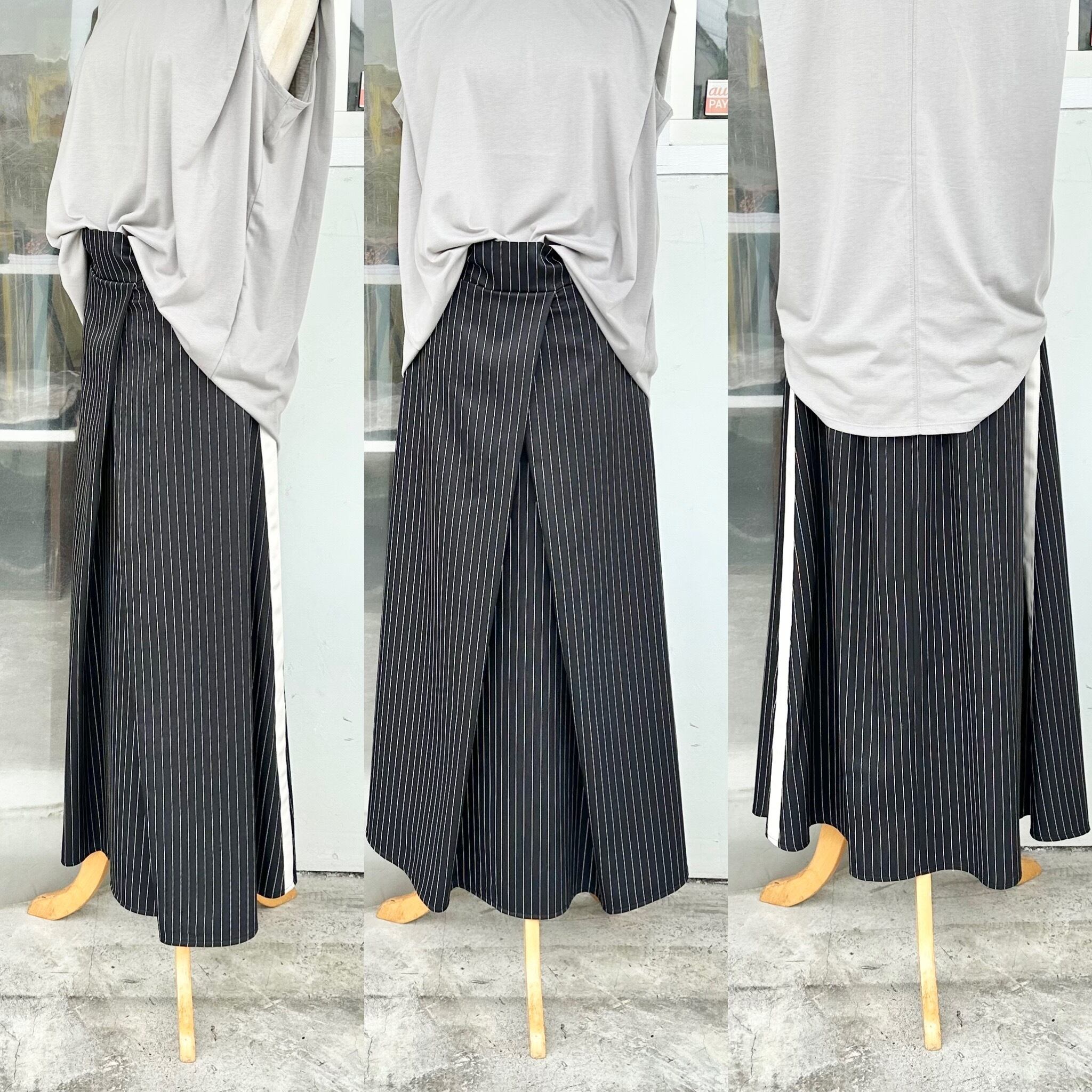 【micalle micalle】サイド ライン タック スカート「ストライプXオフ」