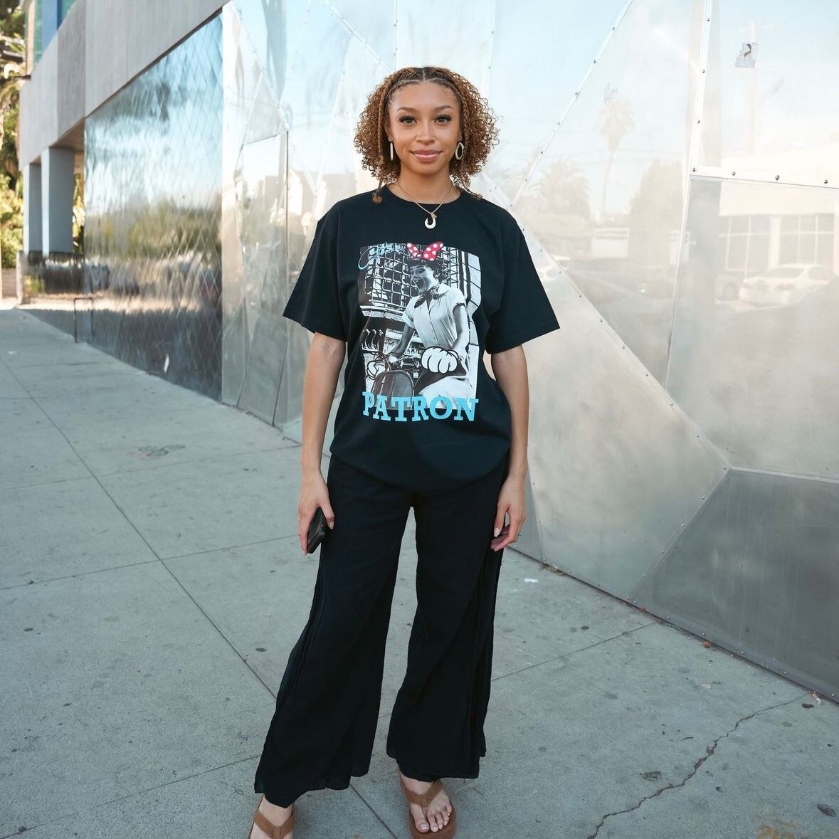 こなれ感と遊び心たっぷりのパロディ プリントです。