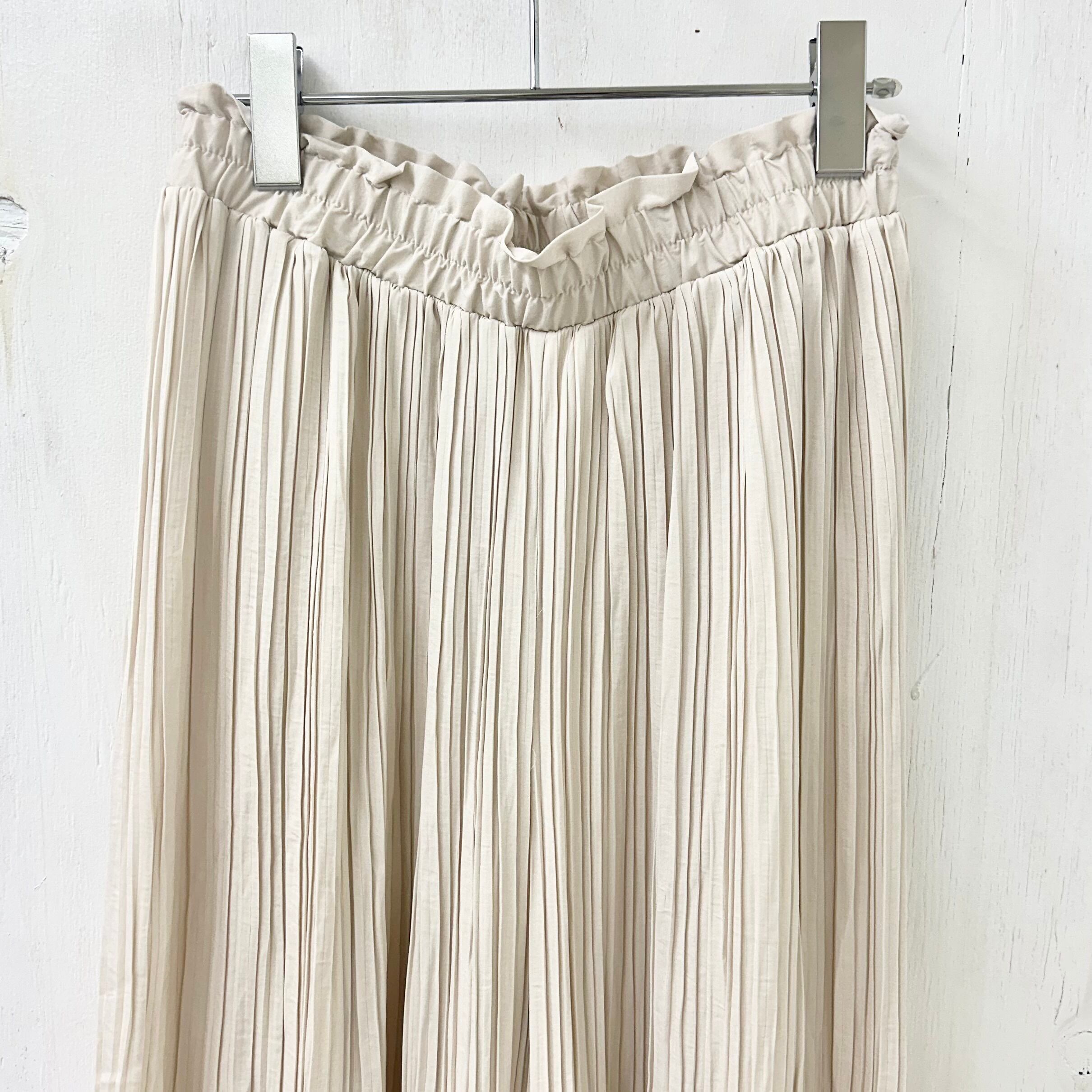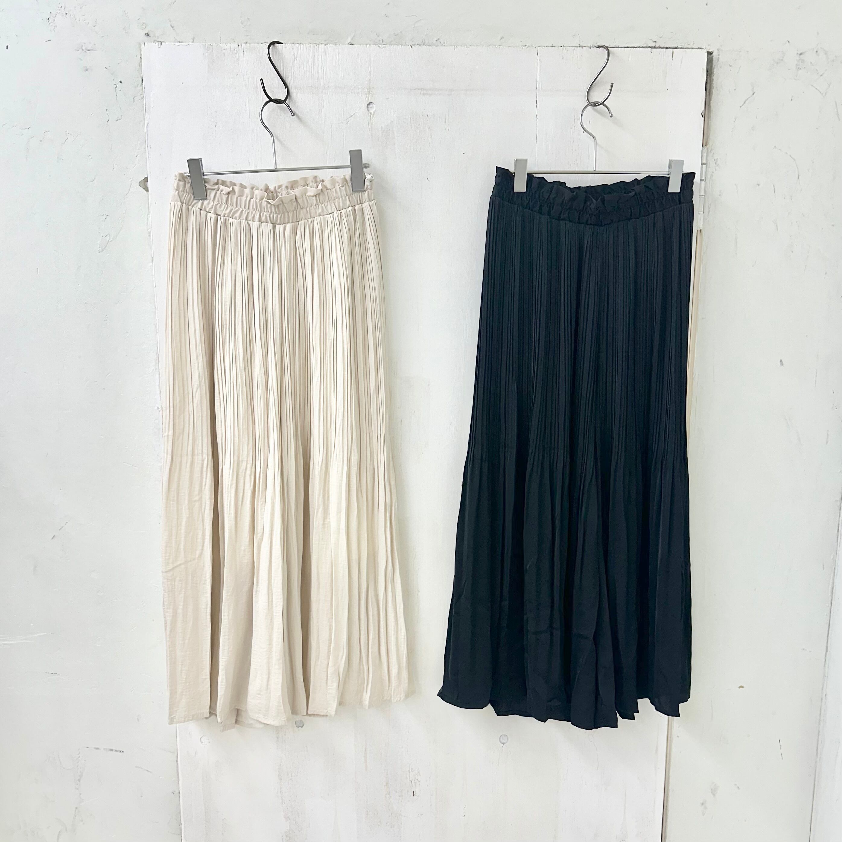 ほんのり光沢感のあるランダム プリーツのワイドパンツが登場。