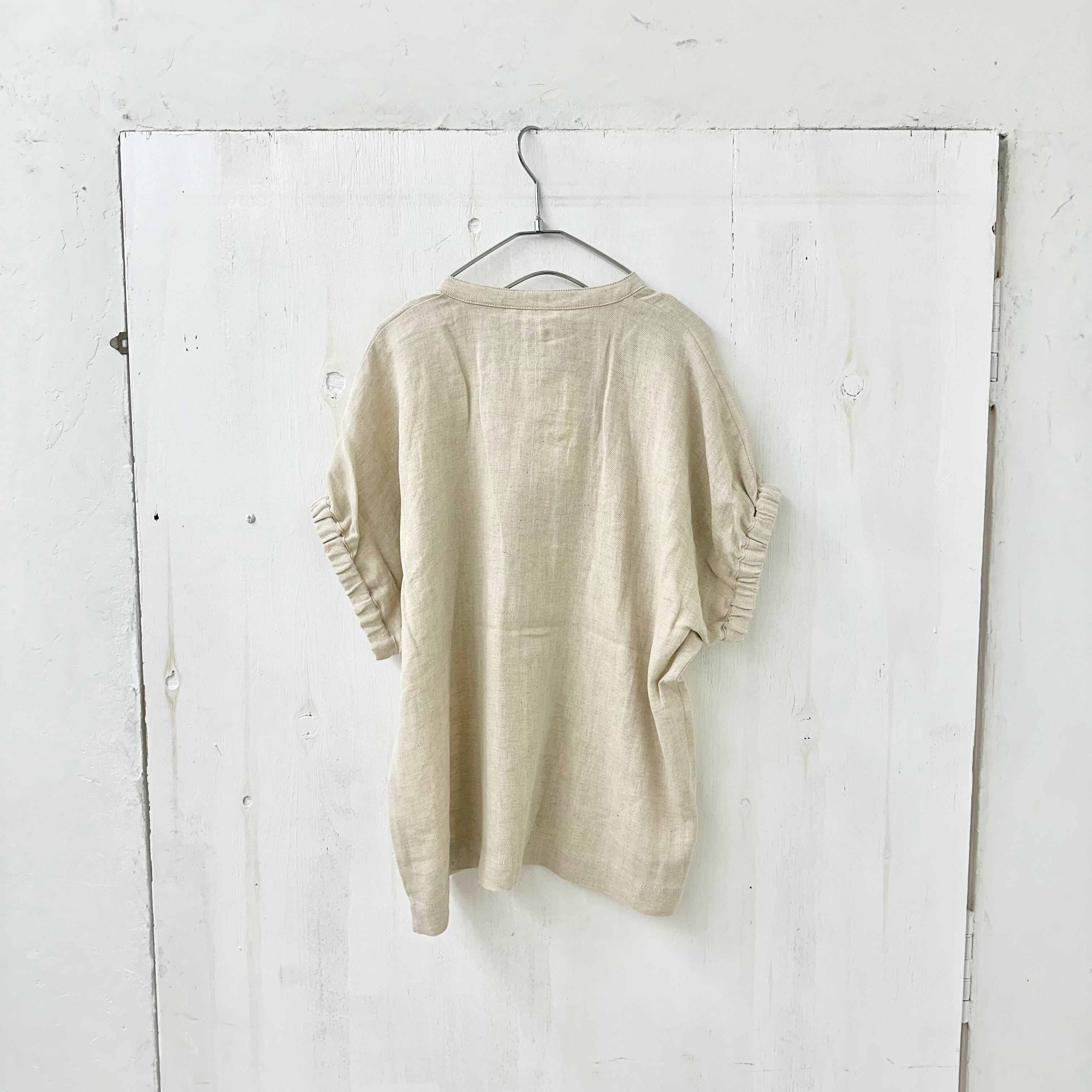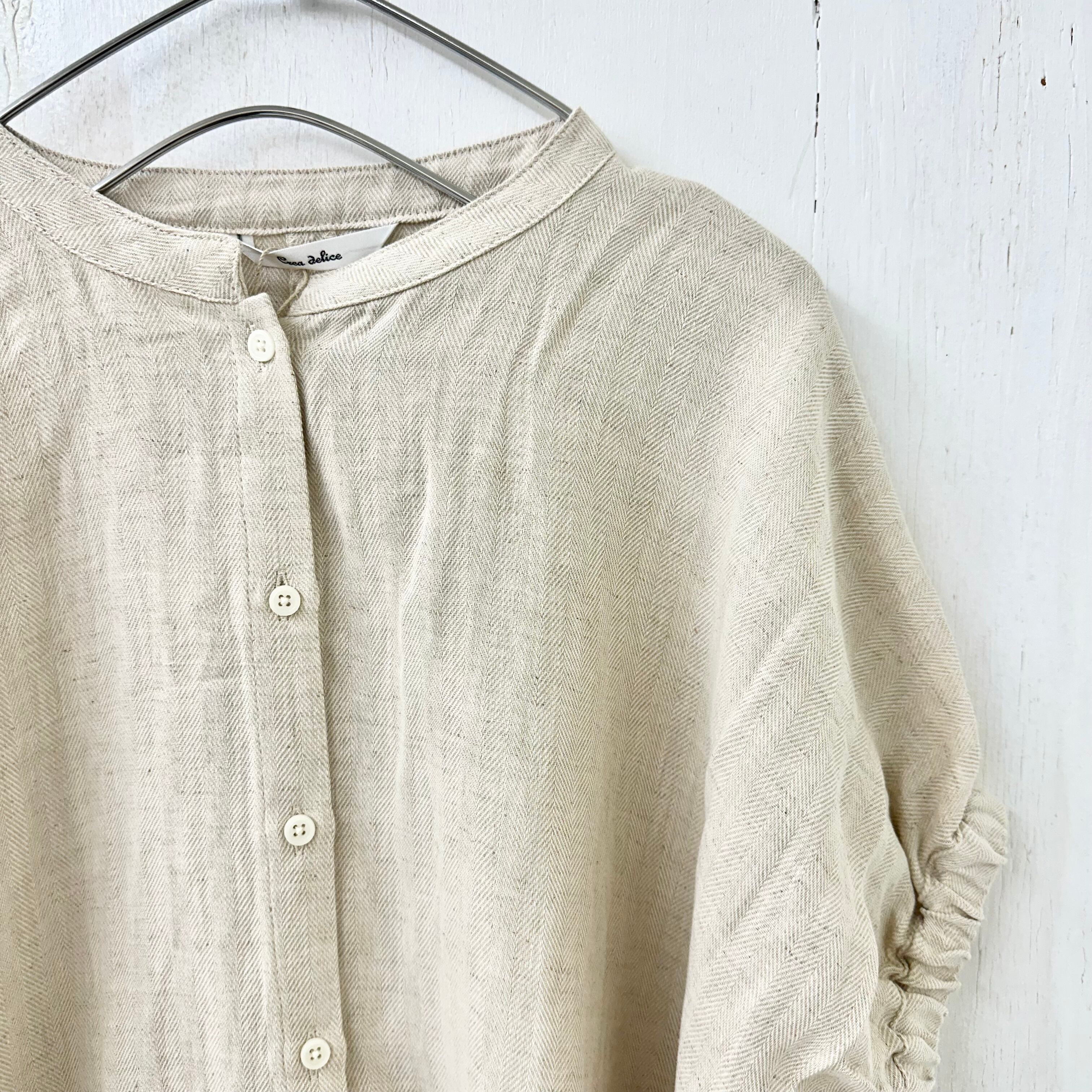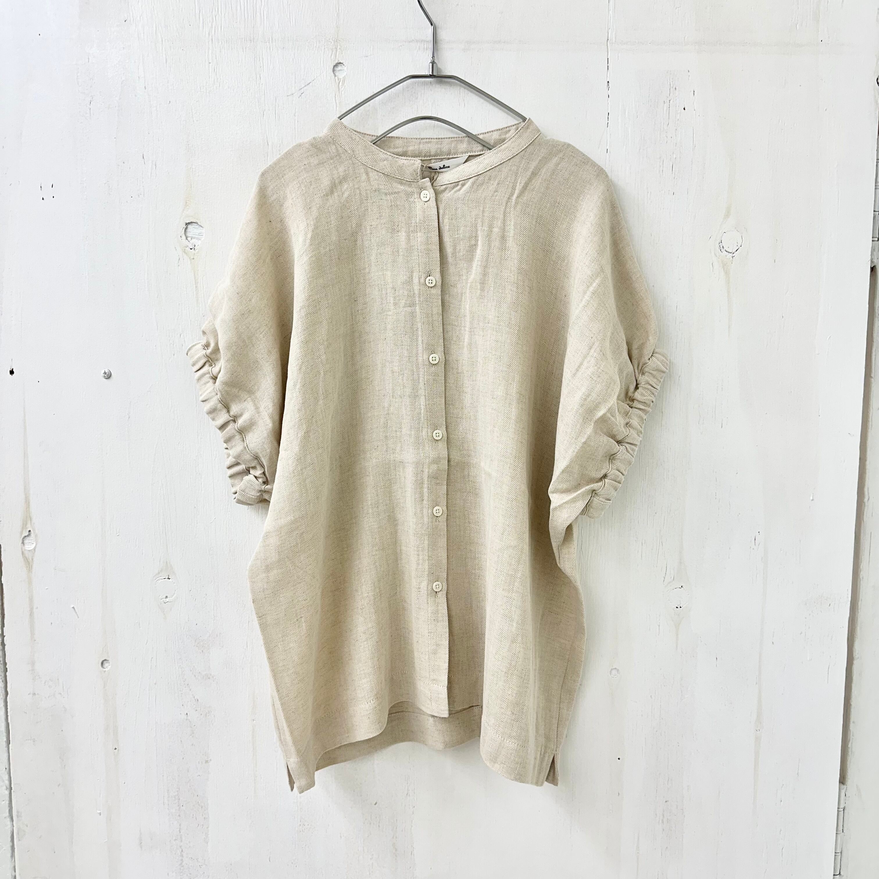 リネン コットン ヘリンボーン バンドカラー ブラウス