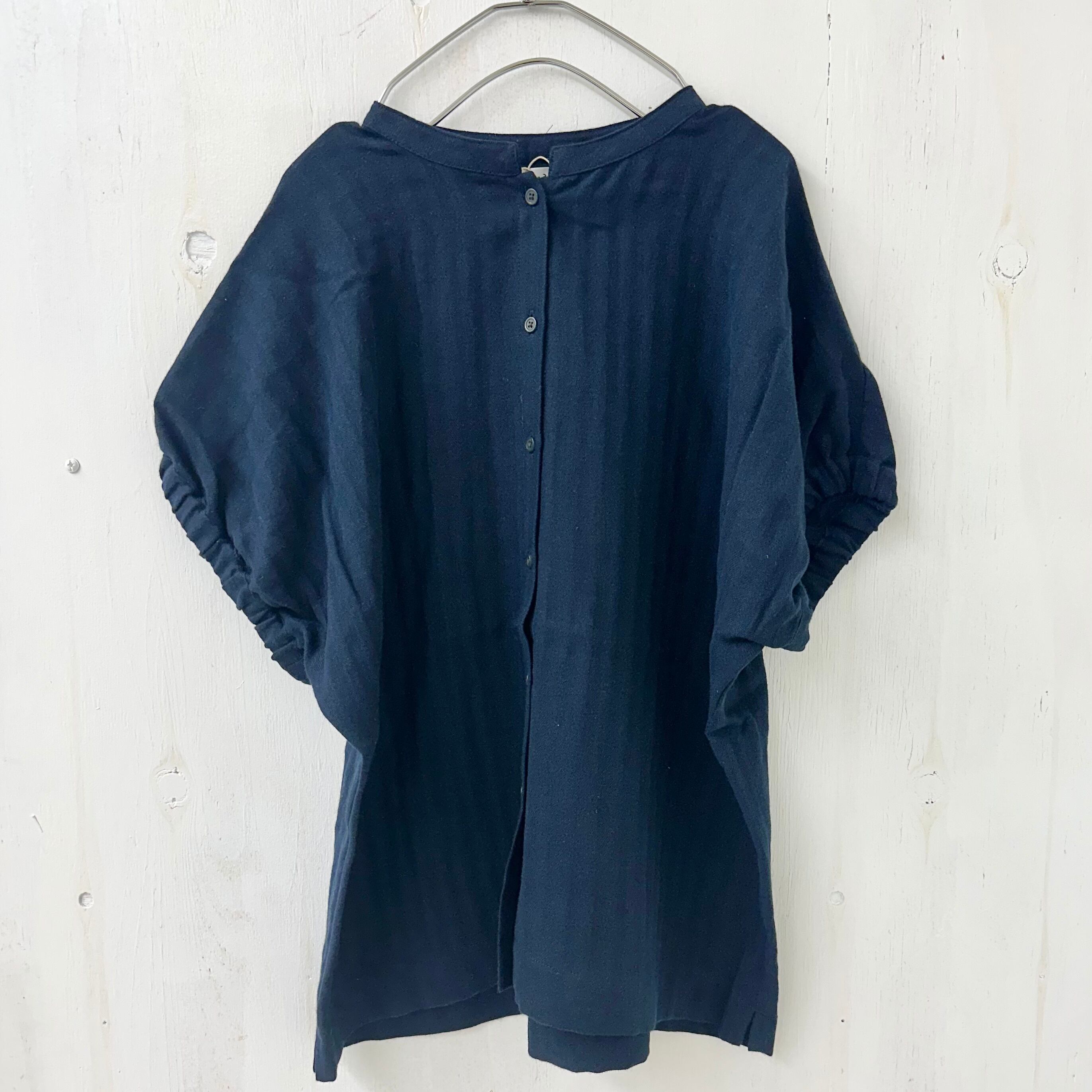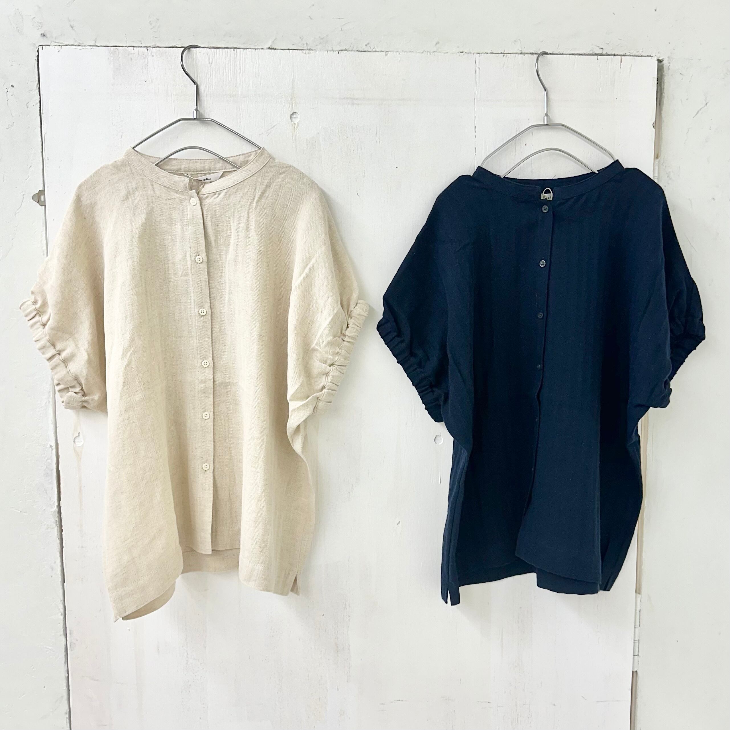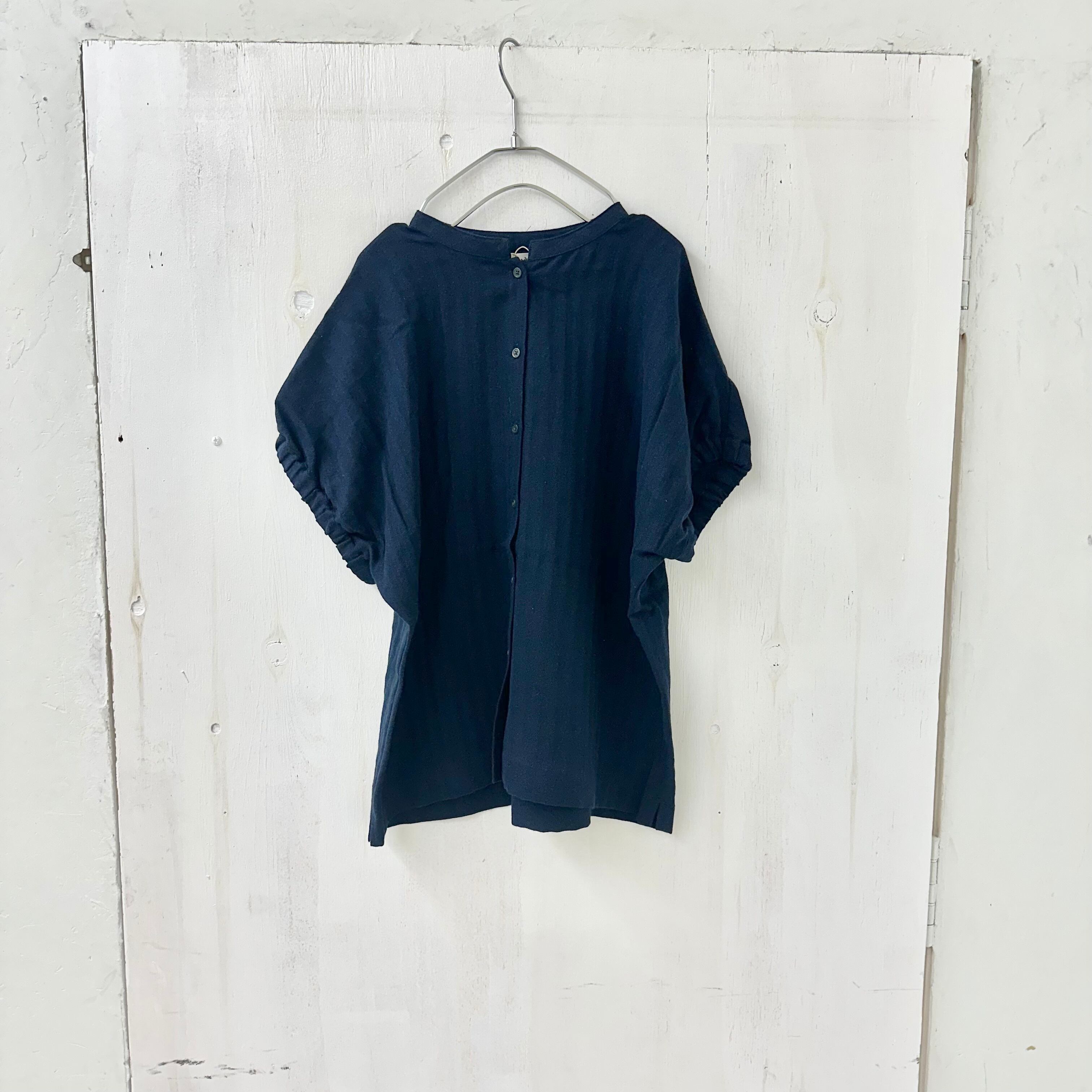 リネン コットン ヘリンボーン バンドカラー ブラウス